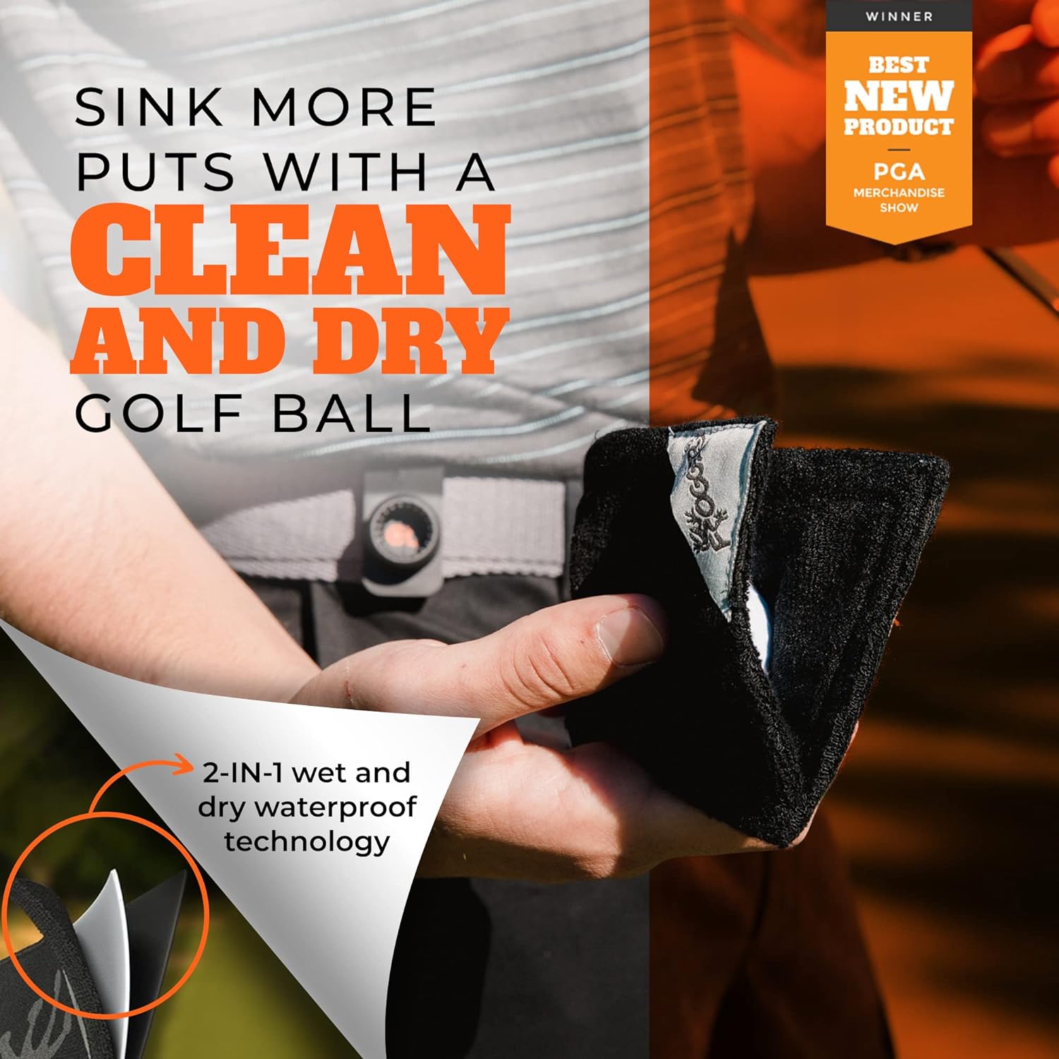 - NO MESS, NO FUSS: Exterior towel tabs keep fingers dry while opening the towel and cleaning golf balls