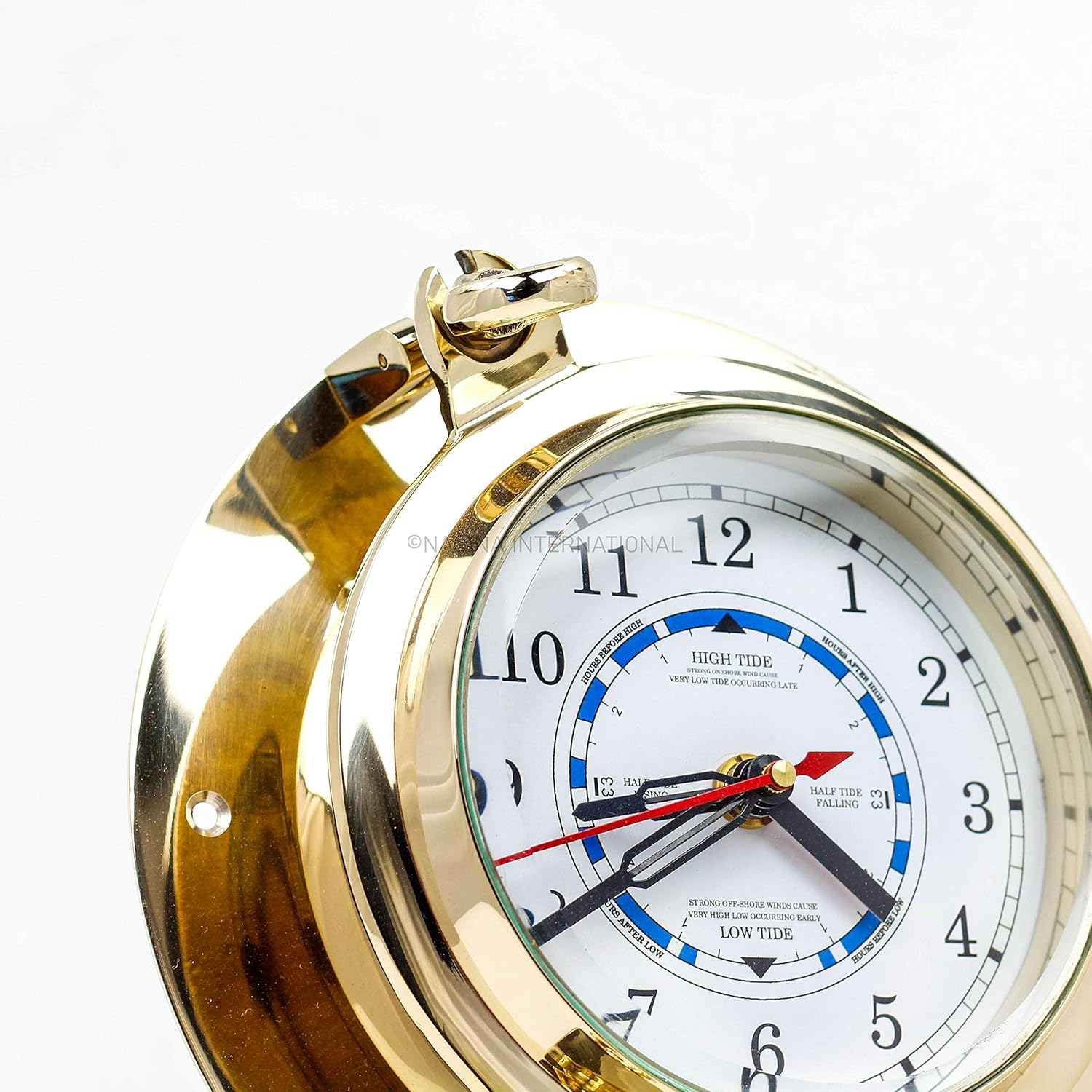 Nagina International 9" Solid Brass Porthole Time and Tide Clock