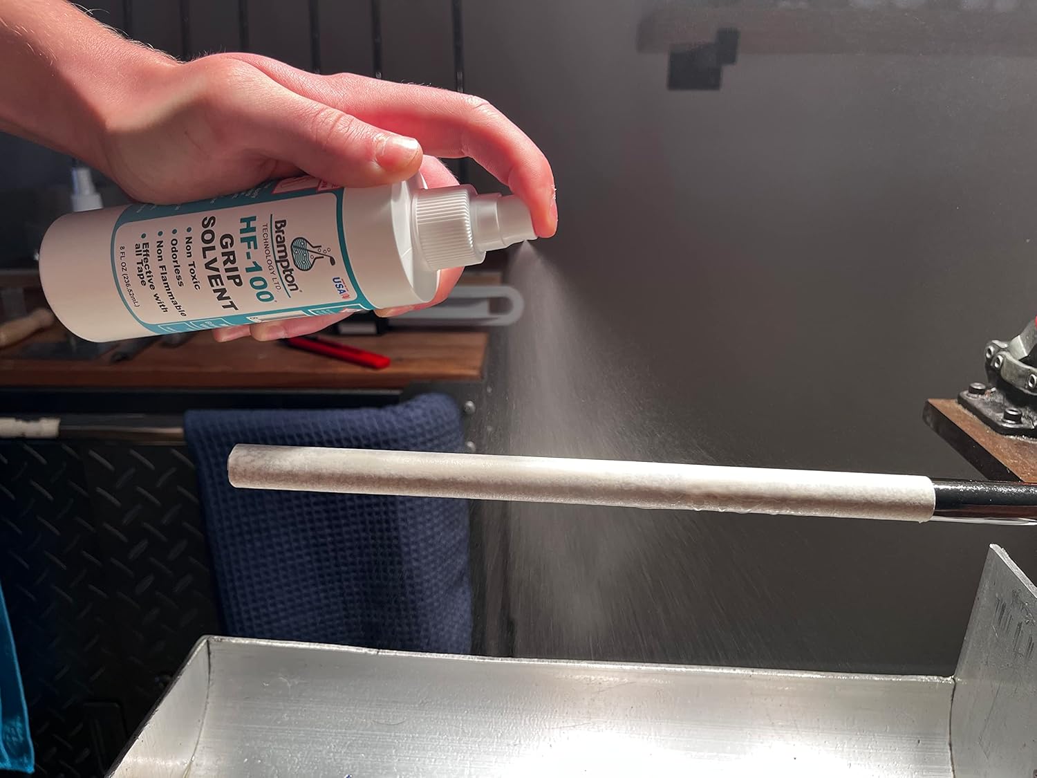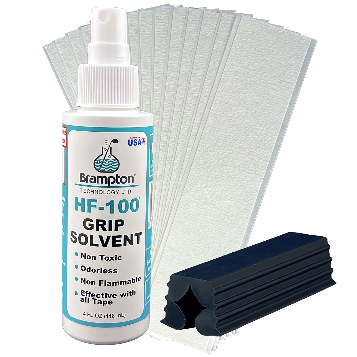 - HF-100 GOLF GRIP SOLVENT- HF-100 golf grip solvent is non-flammable, non-irritating, odorless, effective on all golf grip tapes, and manufactured in the USA by Brampton Technology