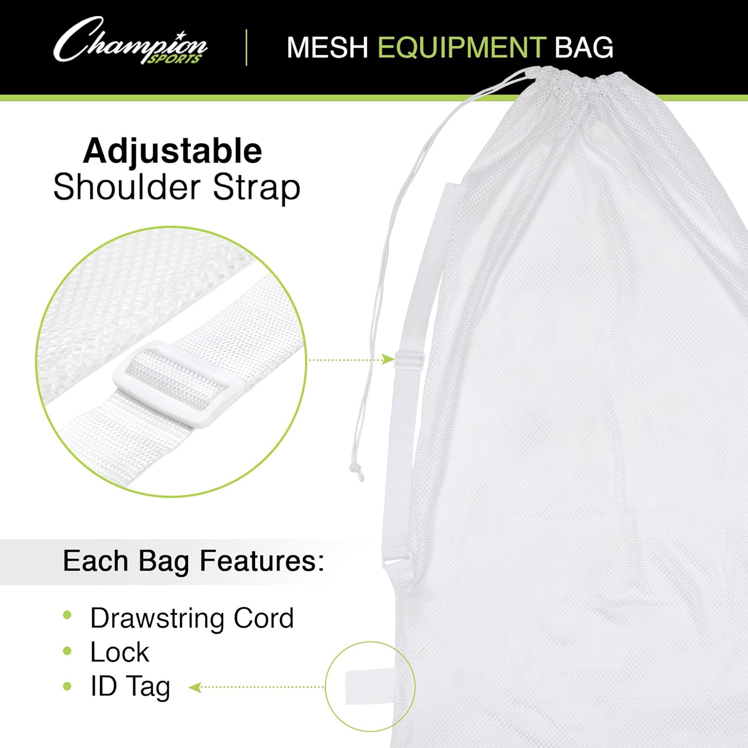 - PREMIUM MESH BAG: Store and organize all your fitness equipment with these nylon mesh bags by Champion Sports! Our sports equipment bags are made with heavy-duty, durable nylon, and are available in multiple vibrant colors.