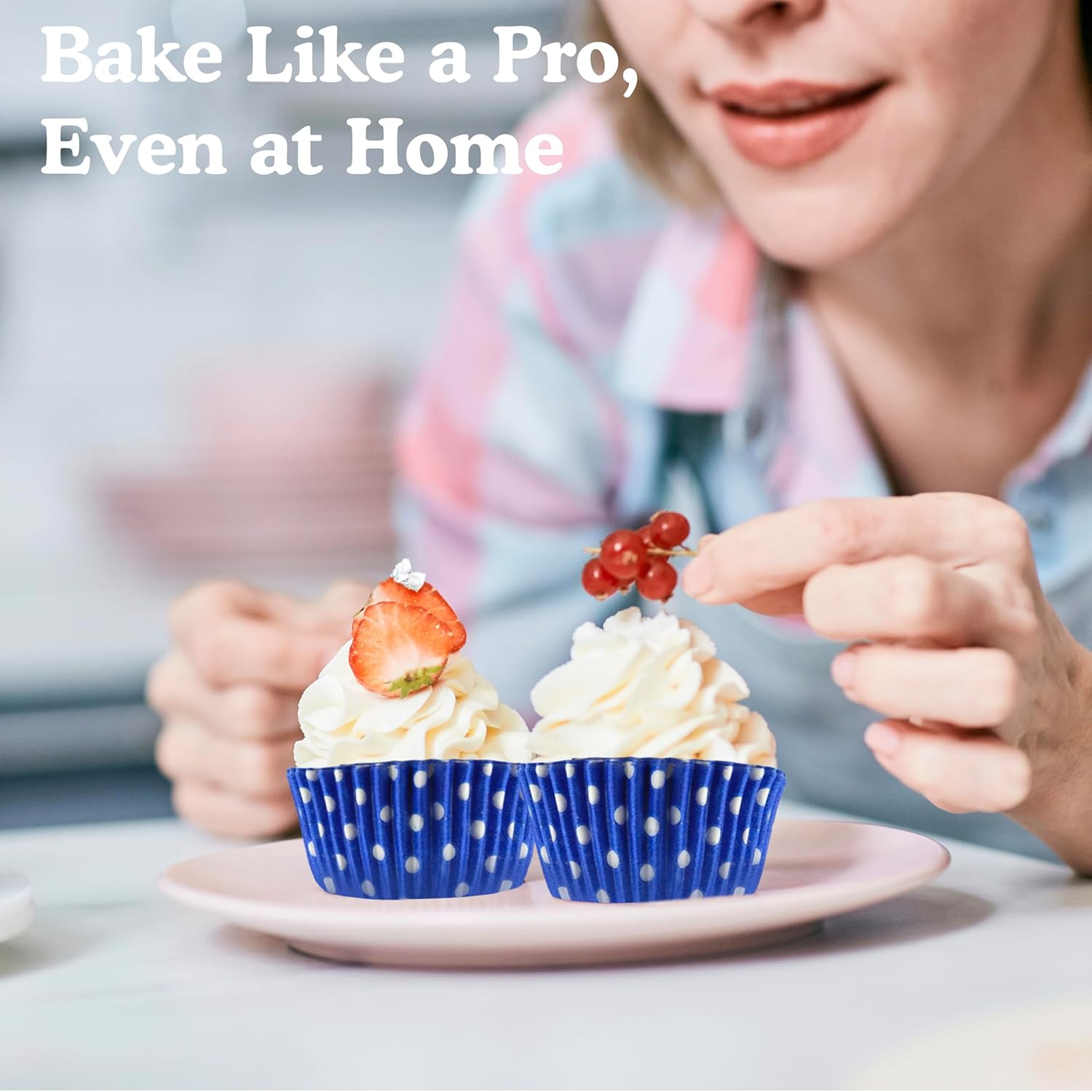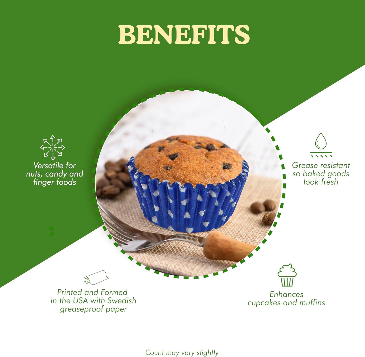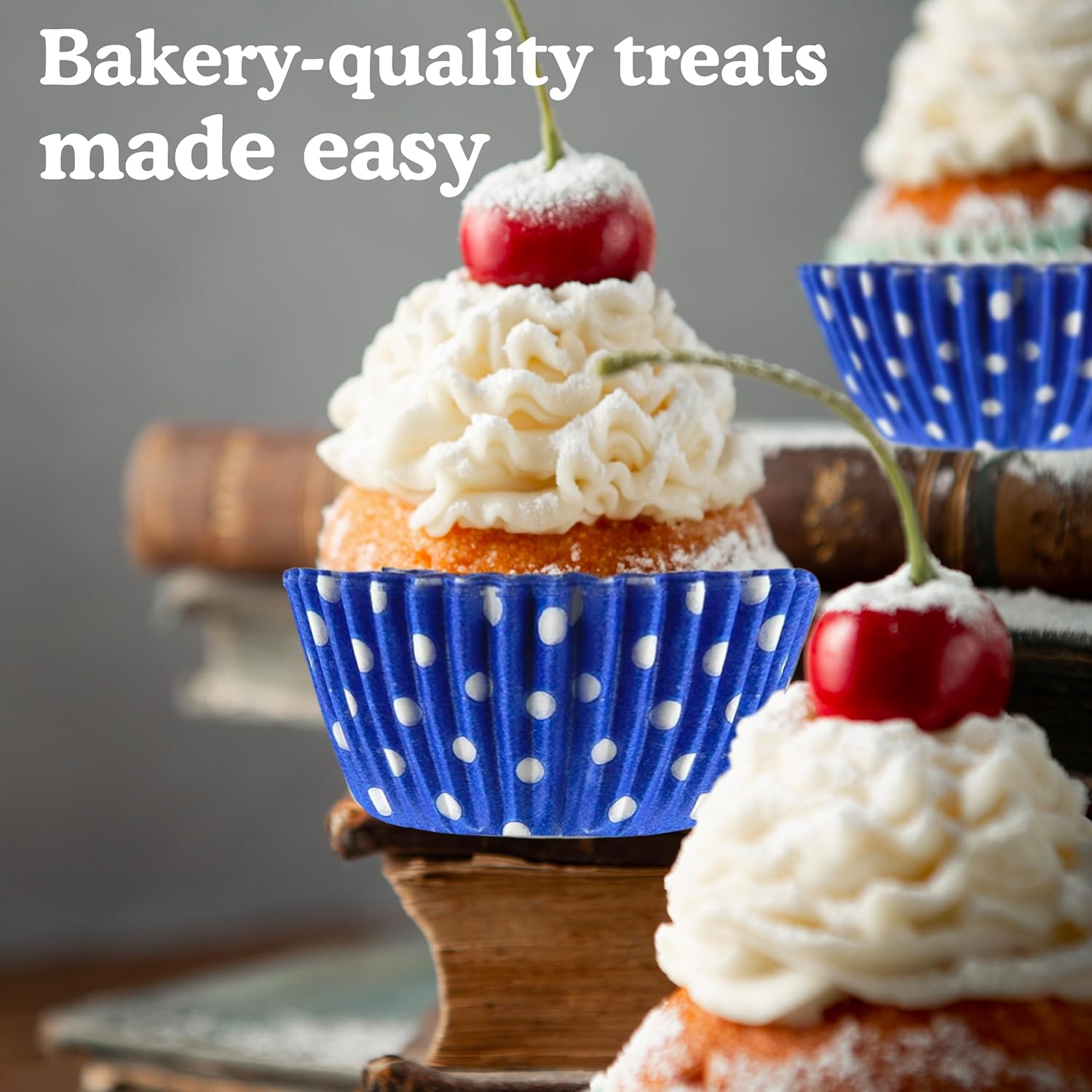 - GREASEPROOF BAKING CUPS FOR CUPCAKES & MUFFINS for nonstick baking and easy removal from pan and wrapper; Give baked goods a professional look and keep hands clean; Fits standard muffin tins, Pack of 40, Cobalt Polka Dots