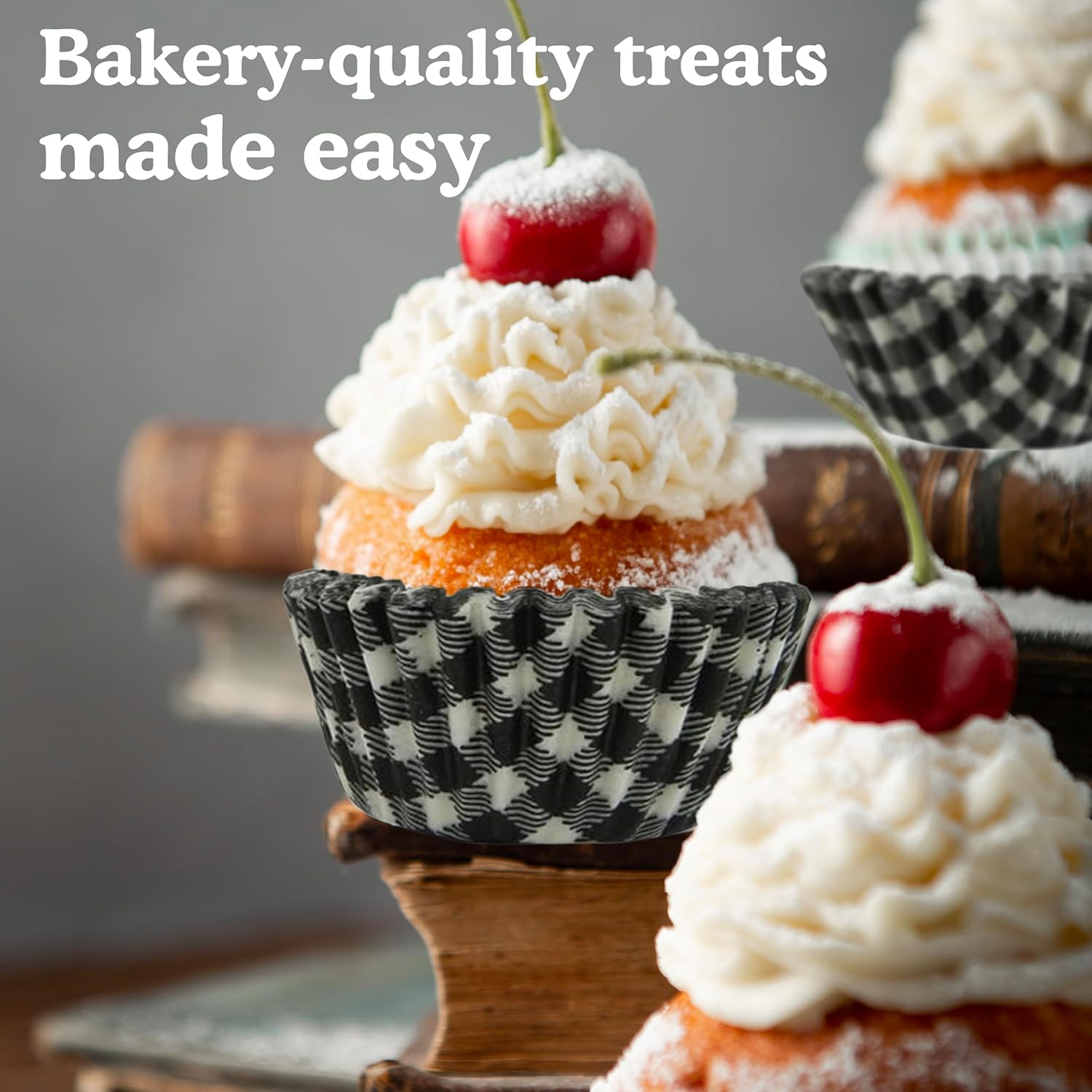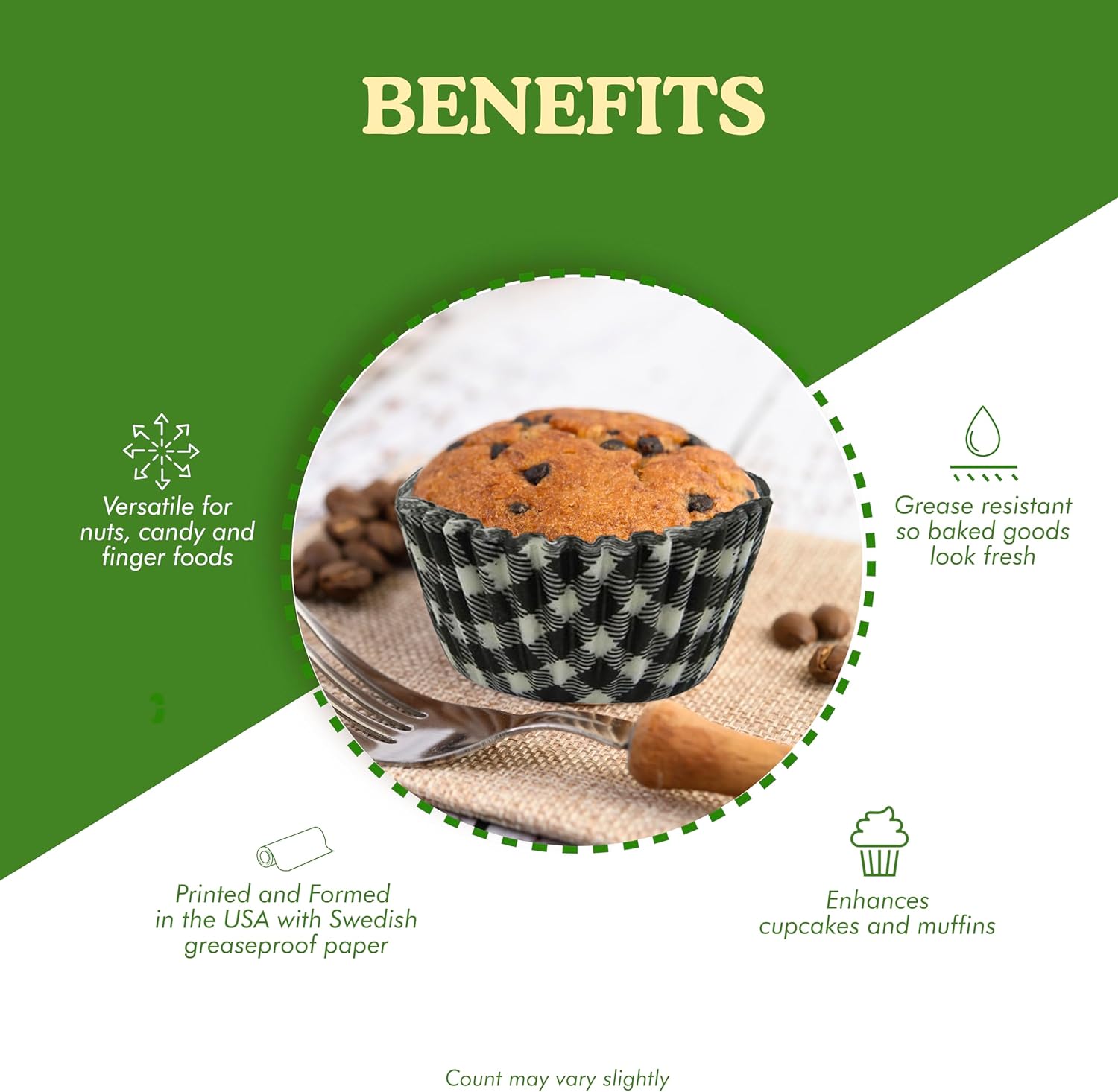 Regency Wraps Greaseproof Professional Grade Baking Cups, Pack of 40, Standard Liners, Black Gingham, for Cupcakes, Muffins, Candy, Non Stick