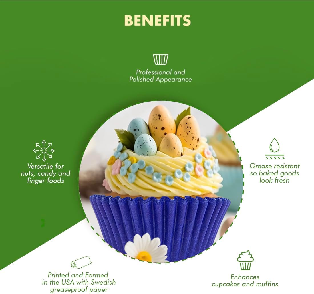 - GREASEPROOF BAKING CUPS FOR CUPCAKES & MUFFINS for nonstick baking and easy removal from pan and wrapper; Give baked goods a professional look and keep hands clean; Fits standard muffin tins, Pack of 40, Royal Blue Solid