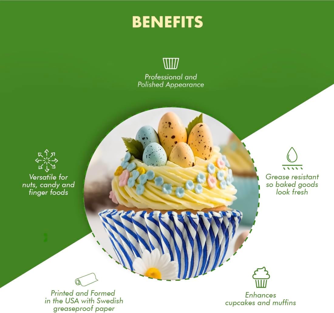 - PROUDLY MADE IN THE USA: Our Professional Grade Patisserie Baking Cups are crafted with Swedish grease proof baking paper, which prevents grease from soaking through so baked goods stay fresh looking longer. A must-have in your baking supplies.
