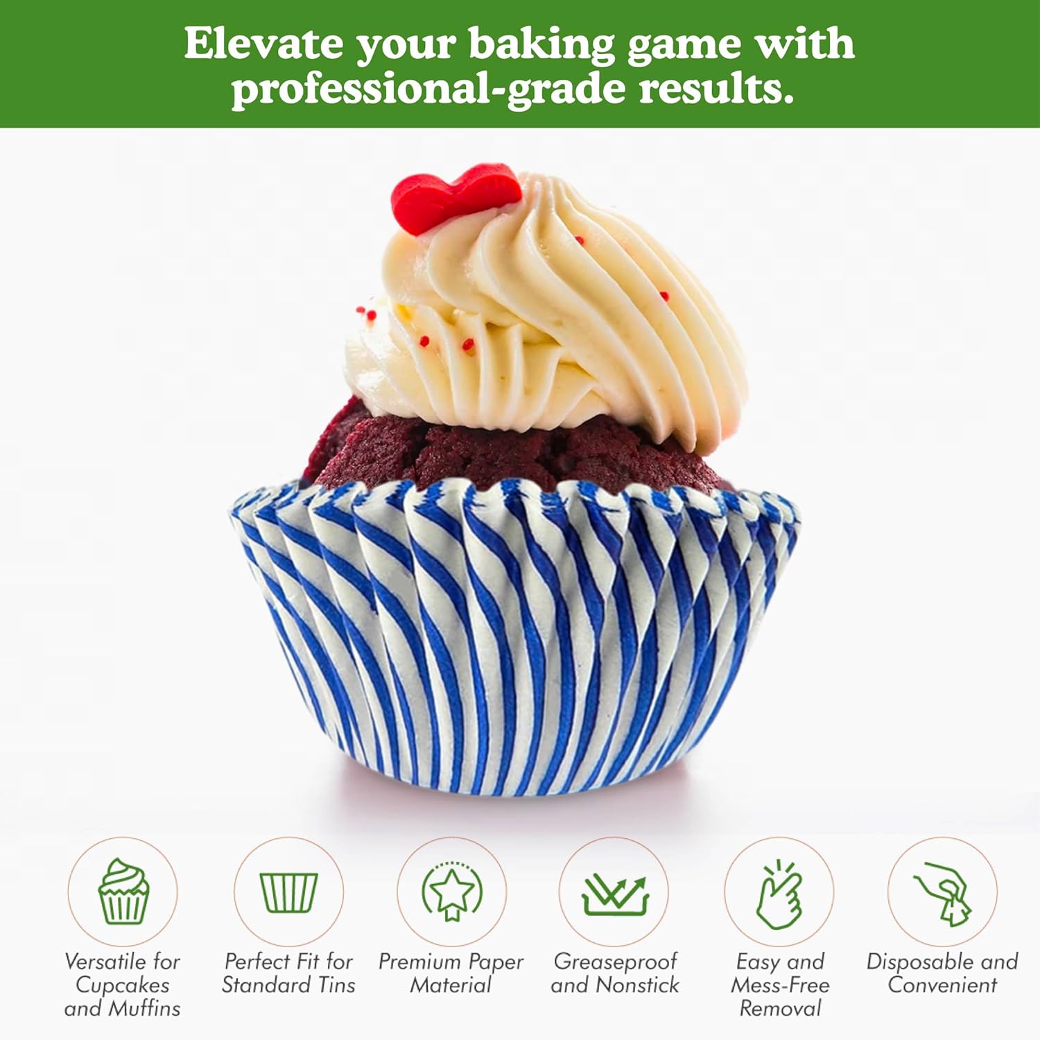 - GREASEPROOF MUFFIN & CUPCAKES LINERS: Enjoy nonstick baking with easy removal from wrapper and pan. Give baked goods a professional look and keep your hands clean. Fits standard cupcake tins.