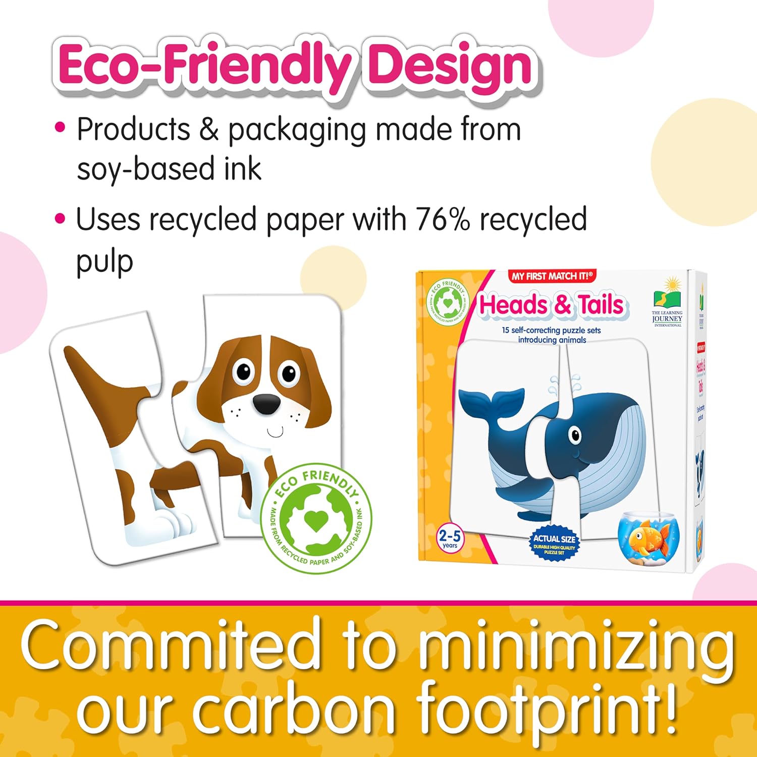 The Learning Journey: My First Match It! - Head and Tails - 15 Self-Correcting Animal Memory Matching Puzzles Games - Educational Activities for Learning - Preschoolers Age 2-5 - Award Winning Toys