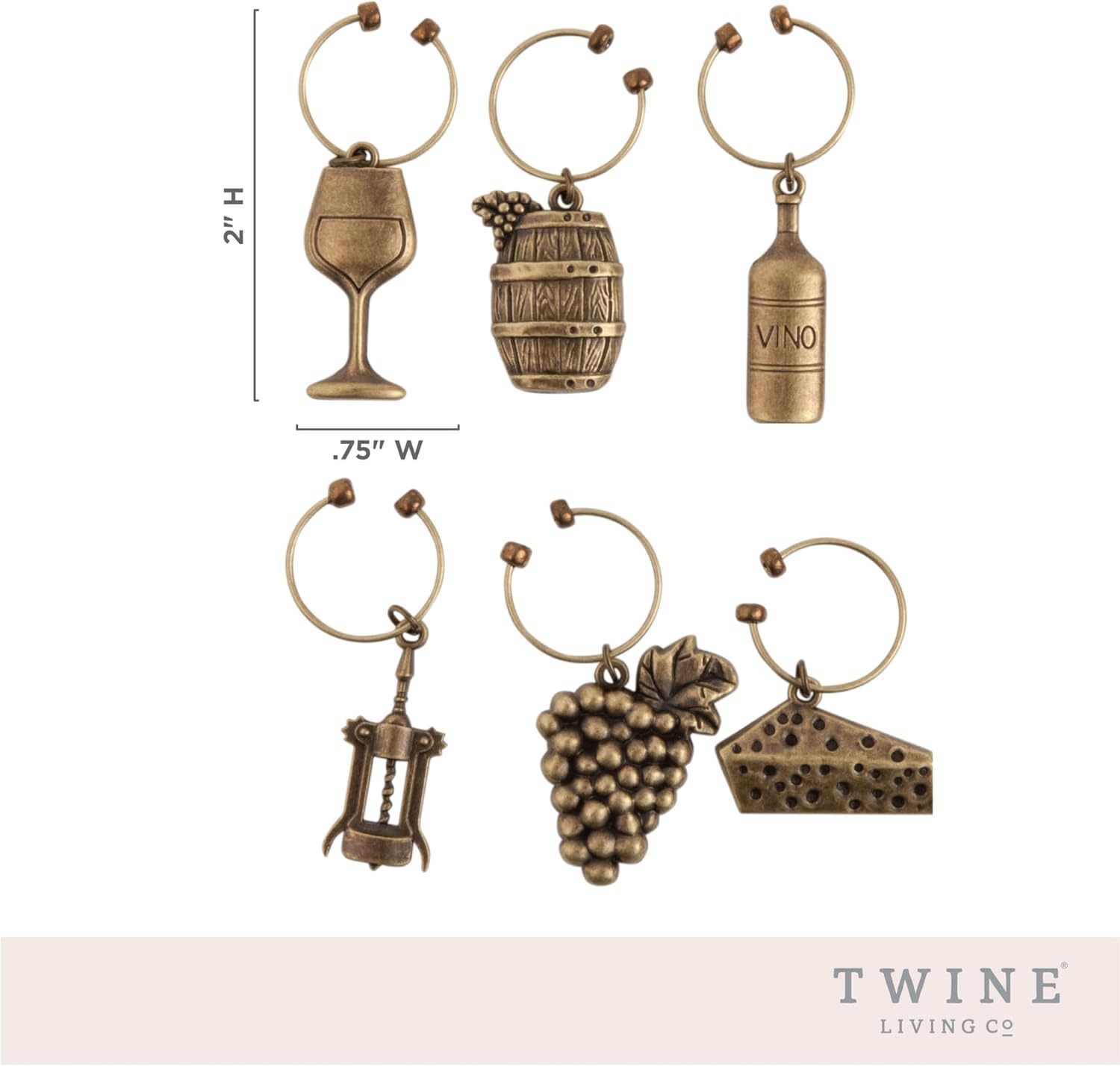 Twine Antiqued farmhouse decor wine charms and drink markers for wine glasses, 6 count