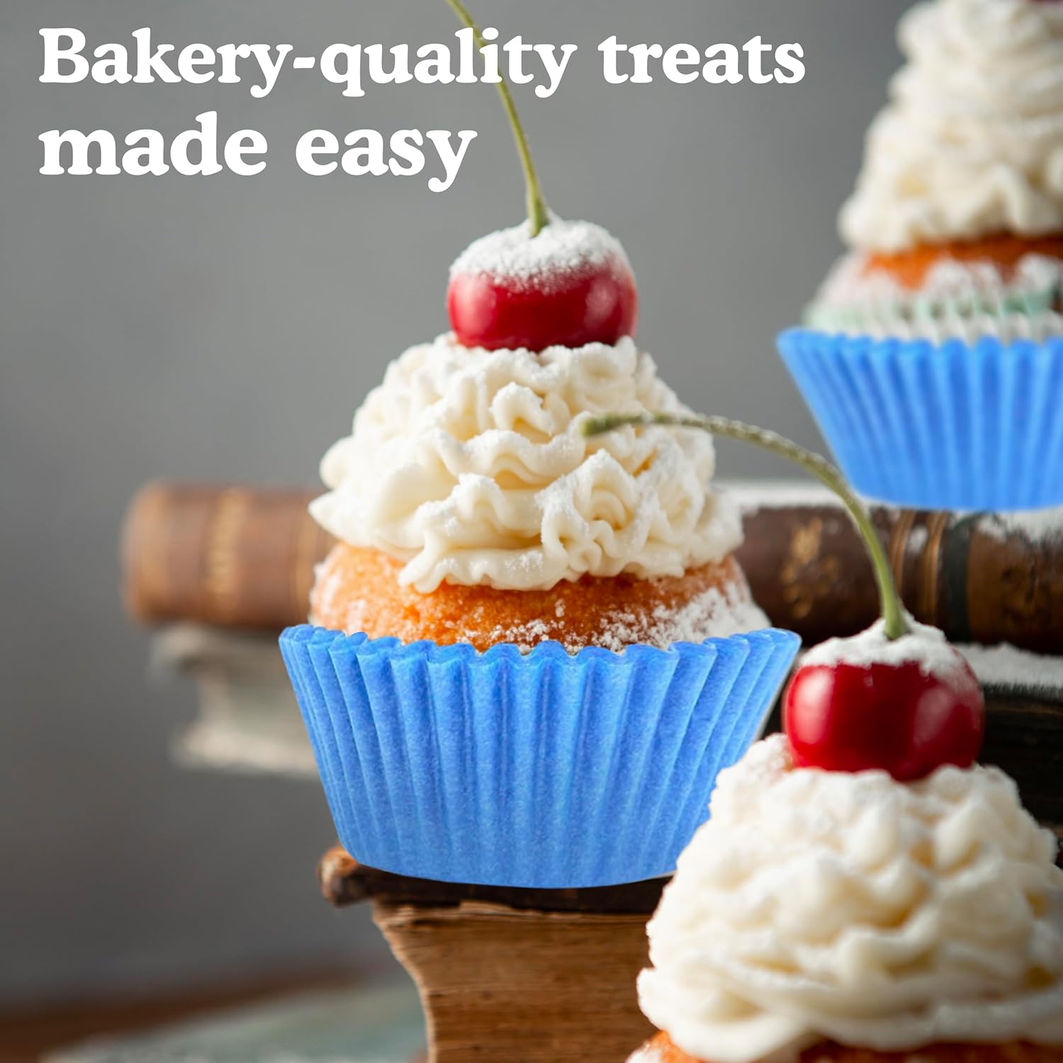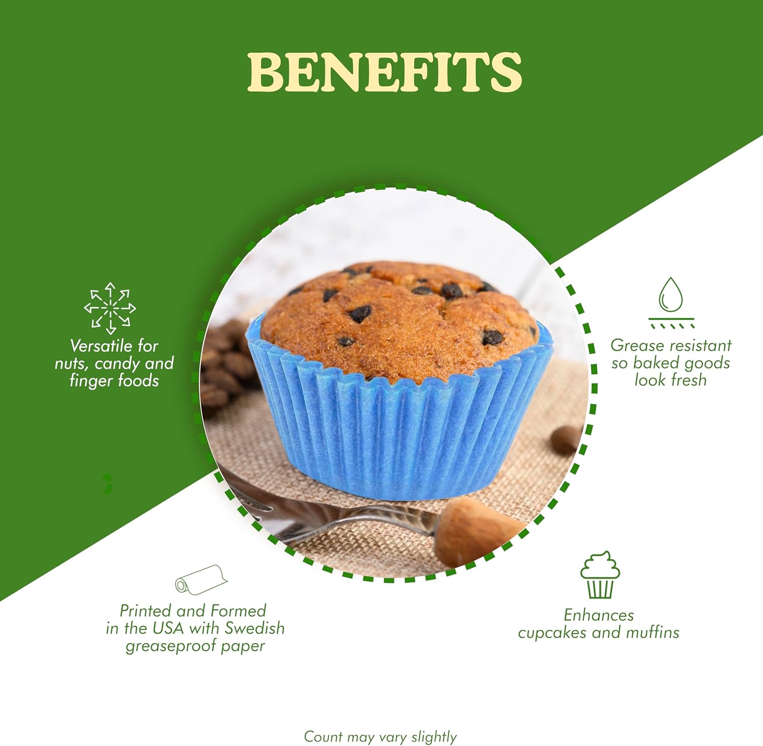 - GREASEPROOF BAKING CUPS FOR CUPCAKES & MUFFINS for nonstick baking and easy removal from pan and wrapper; Give baked goods a professional look and keep hands clean; Fits standard muffin tins, Pack of 40, Light Blue Solid