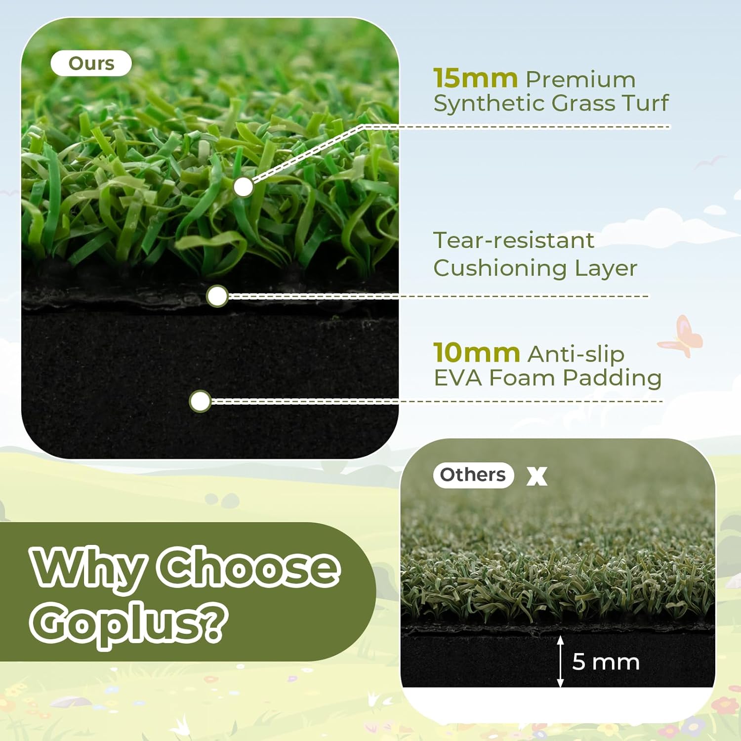 - ⛳【Multiple Skill Level Available】 The Goplus golf hitting mat offers 4 different thickness levels: 20mm, 25mm, 27mm, and 32mm. The 20mm and 25mm options are a cost-effective choice for beginners, while the 27mm and 32mm golf mats provide enhanced durability with a 2mm anti-tearing layer, making them perfect for advanced golf players.