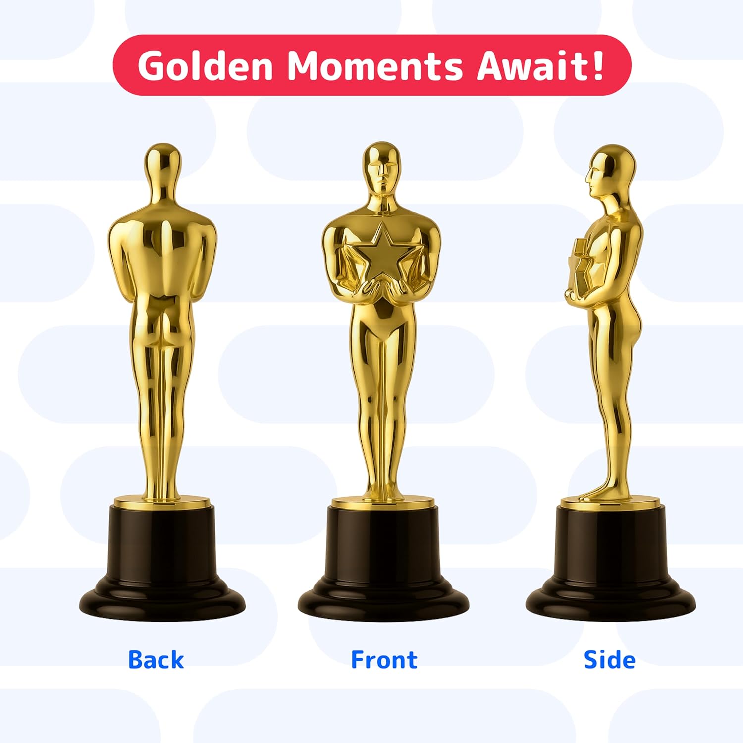 - 12 GOLD TONE AWARD TROPHIES: Measuring 6 inches tall, the gold award trophies are the perfect size for a gift of achievement, an awards party, or fun party favor for kids.