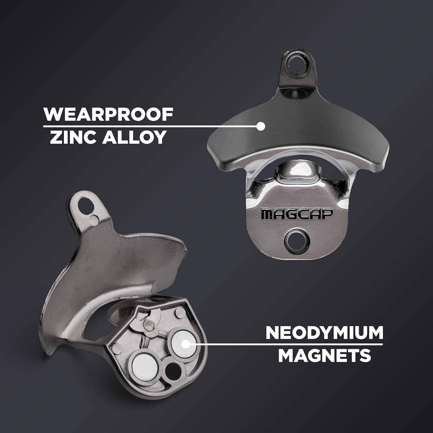 - NOT AN ORDINARY BOTTLE OPENER! - Don’t be fooled by the familiar appearance of this wall mounted bottle opener, the MAGCAP is equipped with two neodymium magnets which allow it to snatch the bottle caps out of the air. Just open your bottle like you normally would and watch the MAGCAP grab the cap! Surprise friends and guests as their bottle caps get caught by the MAGCAP!