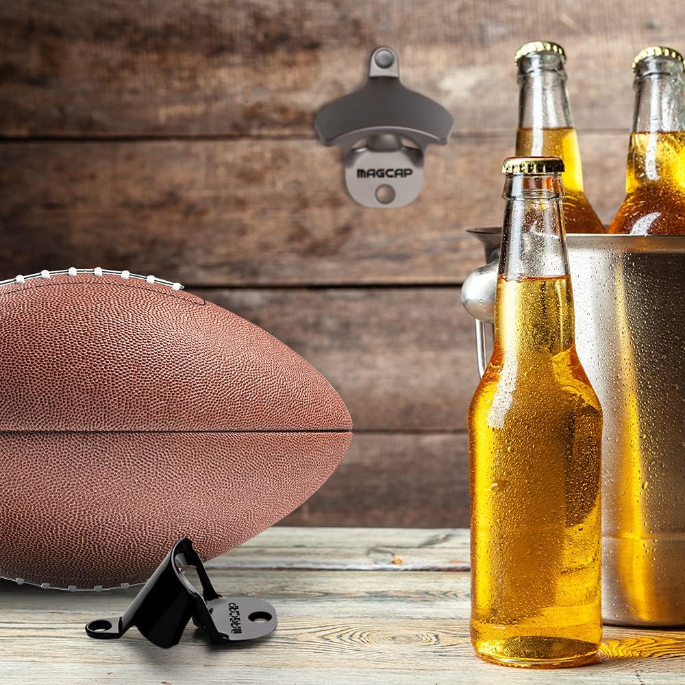 - INDOOR/OUTDOOR - The MAGCAP is a rust proof bottle opener perfect for indoor or outdoor use. Mount it on your patio, in your man cave, in your kitchen or bar. It’s attractive Gunmetal Black finish complements any setting, and it comes with free black stainless steel mounting screws to match the color of the bottle opener!