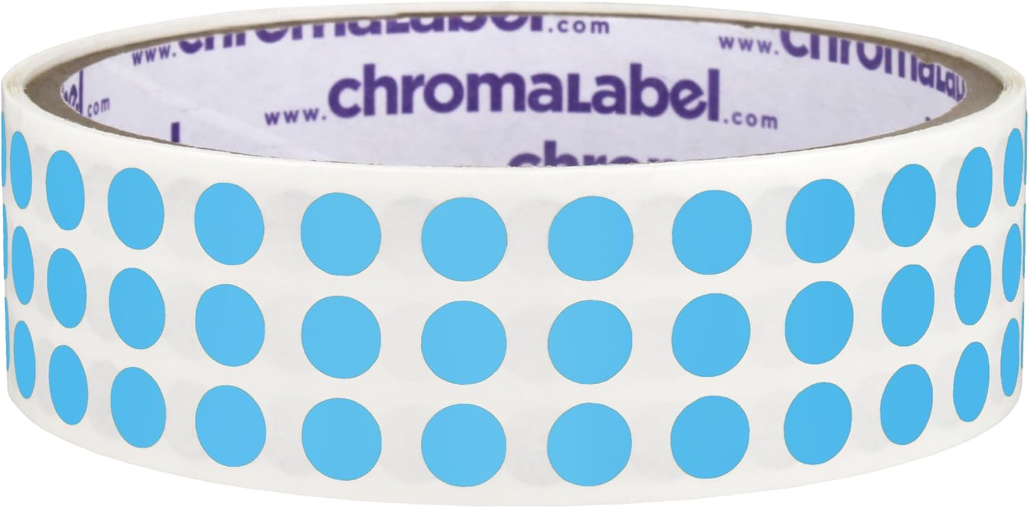 ChromaLabel 1/4 Inch Circle Sticker Labels, High Visibility Permanent Sticker Dots, Round Color Coding Labels - 1000 Sticky Dots per Roll, Light Blue Stickers
