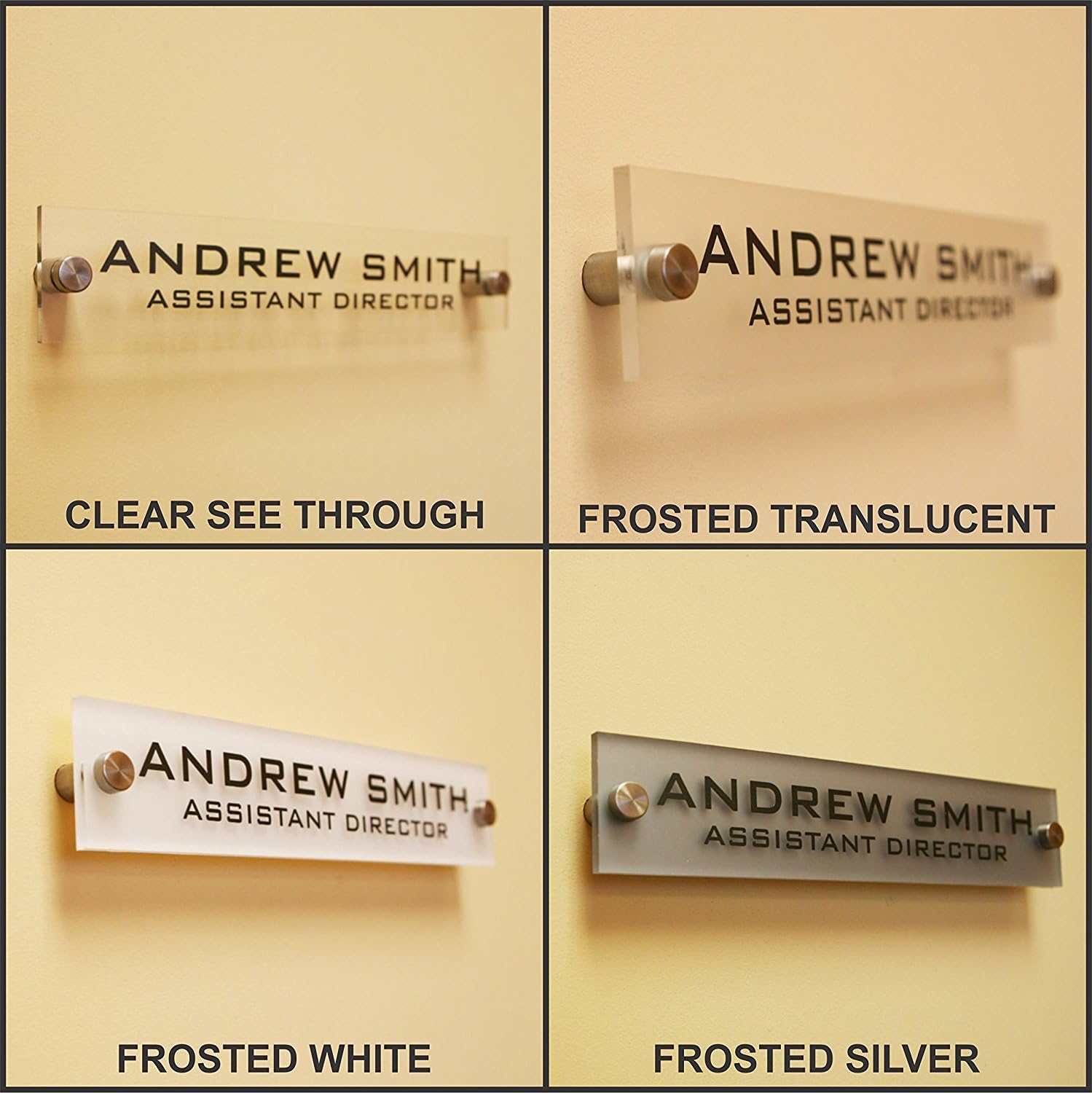 Personalized Office Wall Name Plate Sign. Modern Stainless Steel Legs (Frosted Silver)