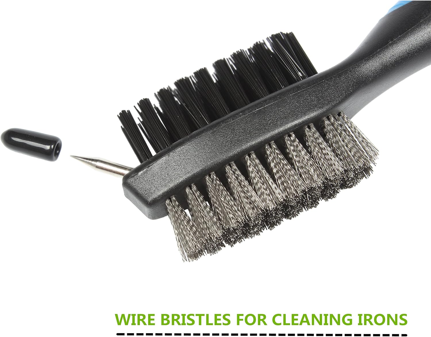 - BEST POWERFUL CLEANING FOR OPTIMUM SPIN ON THE BALL AND BETTER CONTACT: Wire bristles for quick and efficient cleaning of irons while on the fairway, Sharp pick for stubborn dirt and grime in grooves (Comes with plastic cover).