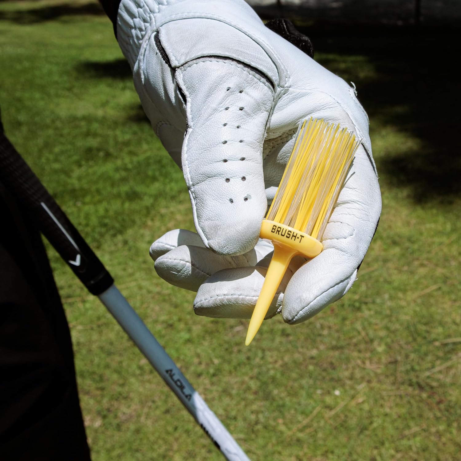 Brush-T Premium Plastic Golf Tees, Yellow XLT 4-Pack, Size 3 1/8", Unbreakable Innovative Design, Consistent Height, Perfect Golf Gift for Men and Women. Golfing Brush Tees, Works with Any Golf Ball
