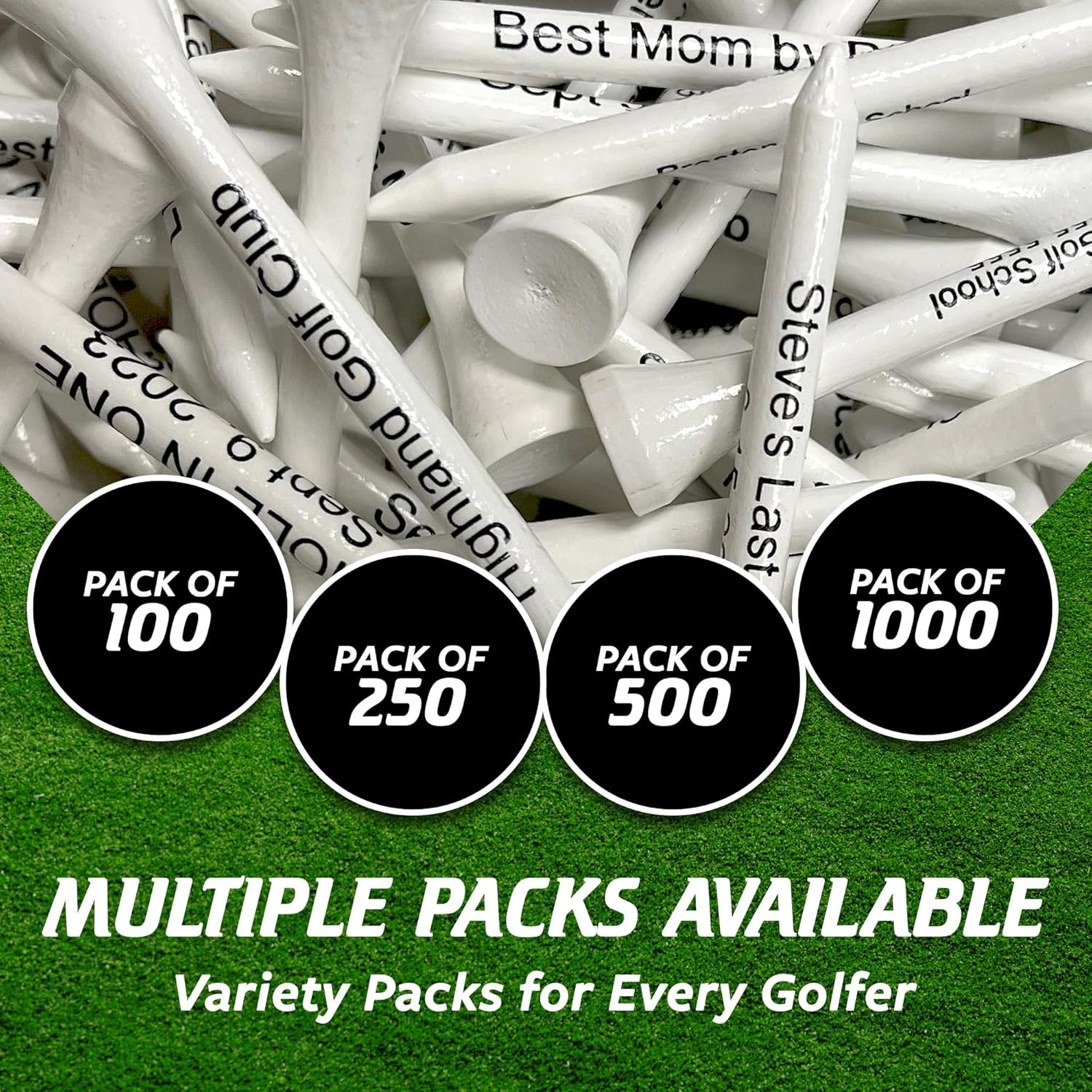 - Sufficient for Replacements & Sharing - Our bulk golf tees are available in 100, 250, 500, and 1000 packs. Stock up on bamboo tees, so you always have replacements and can even share them with your buddies.