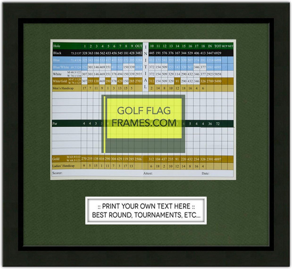 Custom Size Golf Scorecard Frame; Black Wood Frame, Scorecard Size 6x8H, Mat Color Green