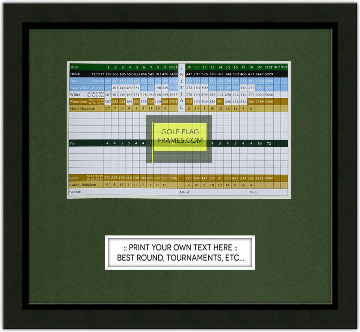 Custom Golf Scorecard Frame - Black Wood, Choose Size & Mat Color; Scorecard Not Included (5x8H, Green Mat)