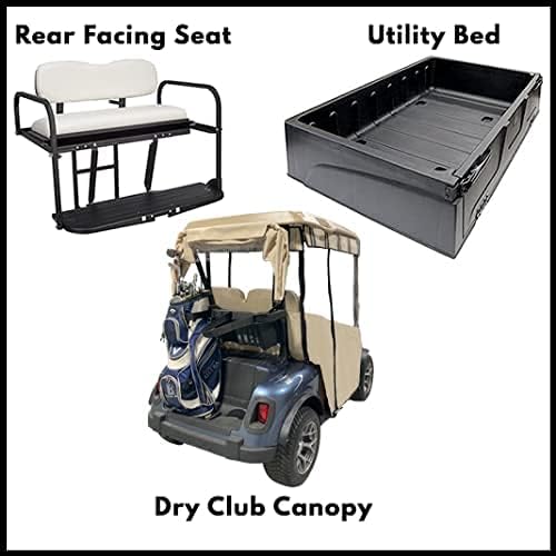 Golf Cart Cover – 3-Sided Track Style Sunbrella Canvas Cart Cover for Yamaha Drive and Drive 2 – Fits Golf Bags, Utility Box, Rear Facing Seat