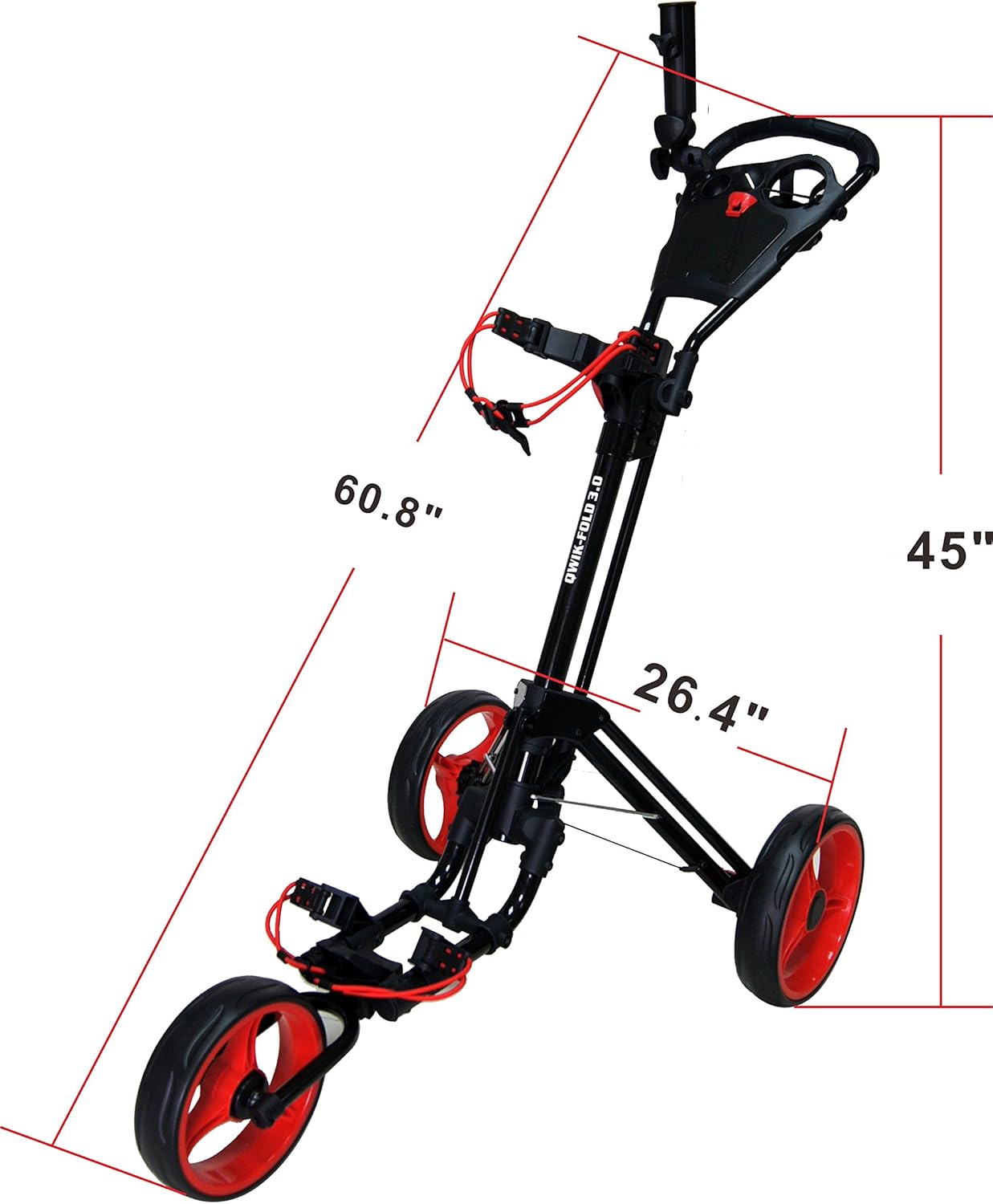 - BUILT-IN UMBRELLA HOLDER: This golf push cart features an adjustable umbrella holder (a $39.99 value) that will keep you and your clubs dry.