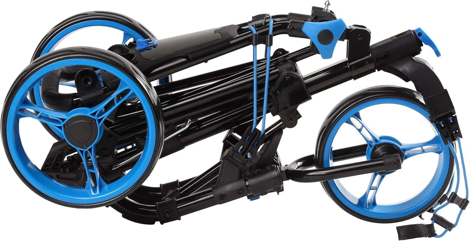 • One-Second Fold/Unfold: Open or collapse your golf push cart in a single step with patented bullet-system technology. Lift the handle to unfold or press the colored button to fold, making setup and storage effortless