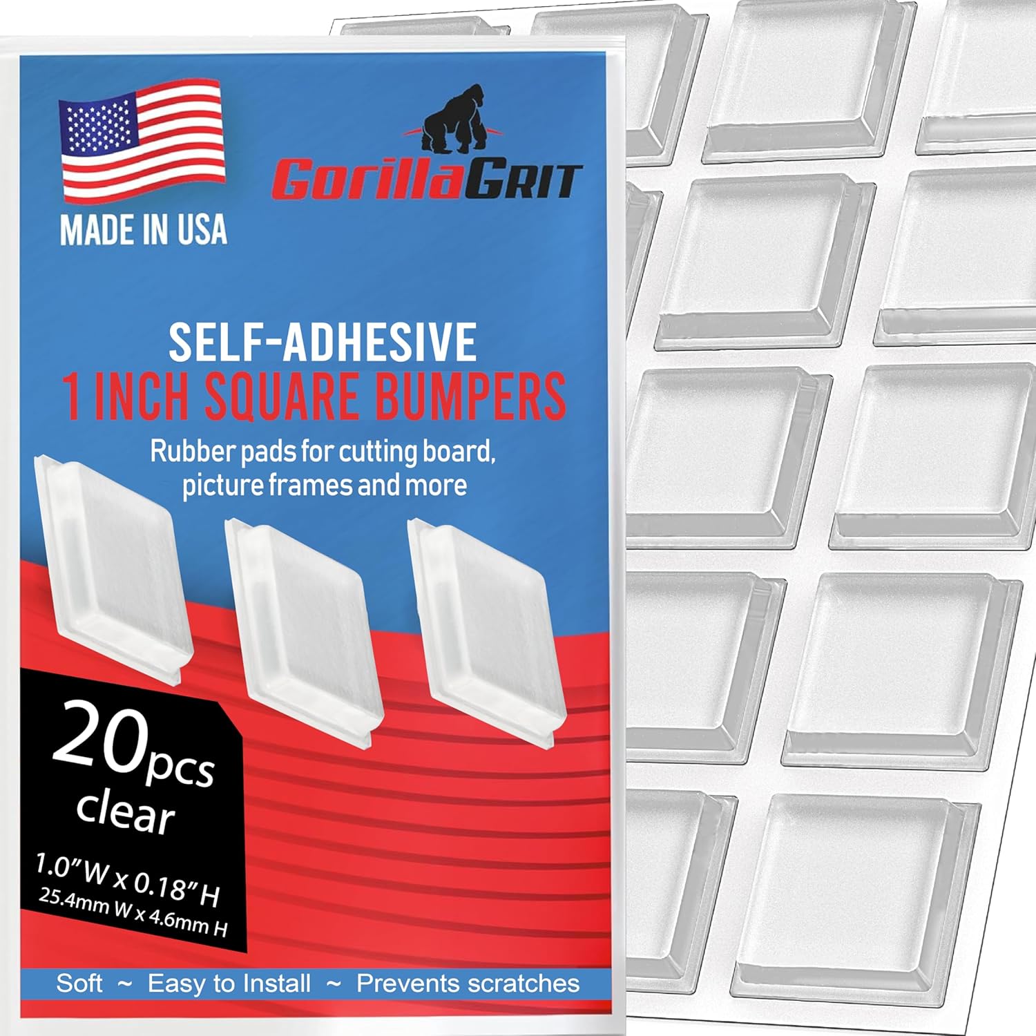 Clear Rubber Bumpers Large - Rubber Feet for Cutting Boards - Glass Table Top Bumpers, Picture Frame Spacers, Self Adhesive Furniture Pads - 1 Inch Square Self Stick Pads - 20 PCs