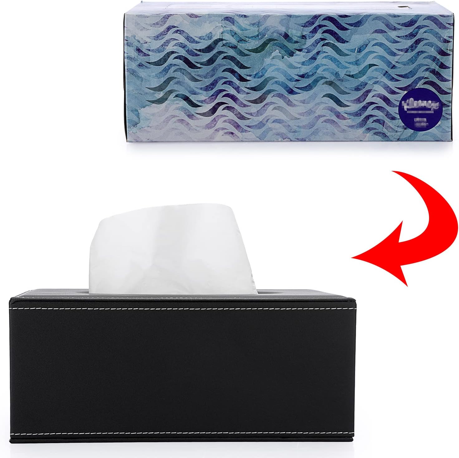 Sumnacon Tissue Box Cover Rectangle Leather Tissue Box Stylish Tissue Box Holder with Magnetic Bottom, Decorative PU Tissue Cover for Bathroom Living Room Bedroom Table Desk Home Office Car, Black