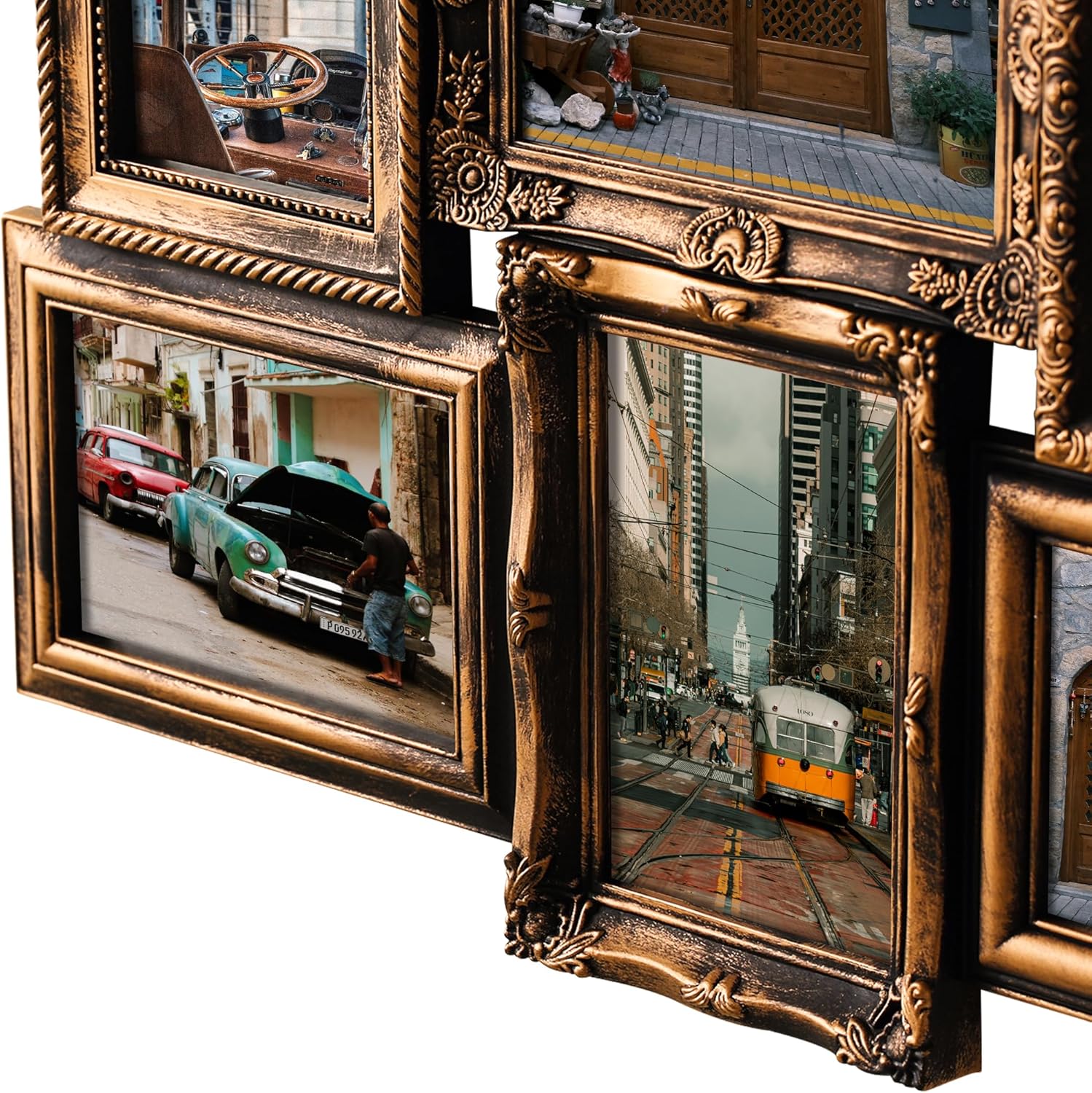 - ELEGANT LOOKING - Luxury Loyal Bronze Finish & Detailed Curved Frame | coating aluminum | Stylish Design - pack your a series of good time | 9 Photo slots DIY arrangement | Idea holiday gift for family friends theme
