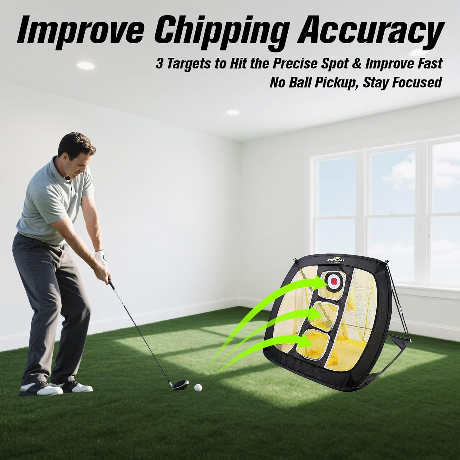 - Faster setup, pop-up and practice anywhere: The golf chipping net pops open in seconds, no tools needed. Folds down to just 14 inches, making it easy to fit in an extra carry bag. Golf Chipping in your backyard, garage, or trips. Itβs quicker to set up and easier to store, so your daily chipping practice becomes part of your routine without wasting time