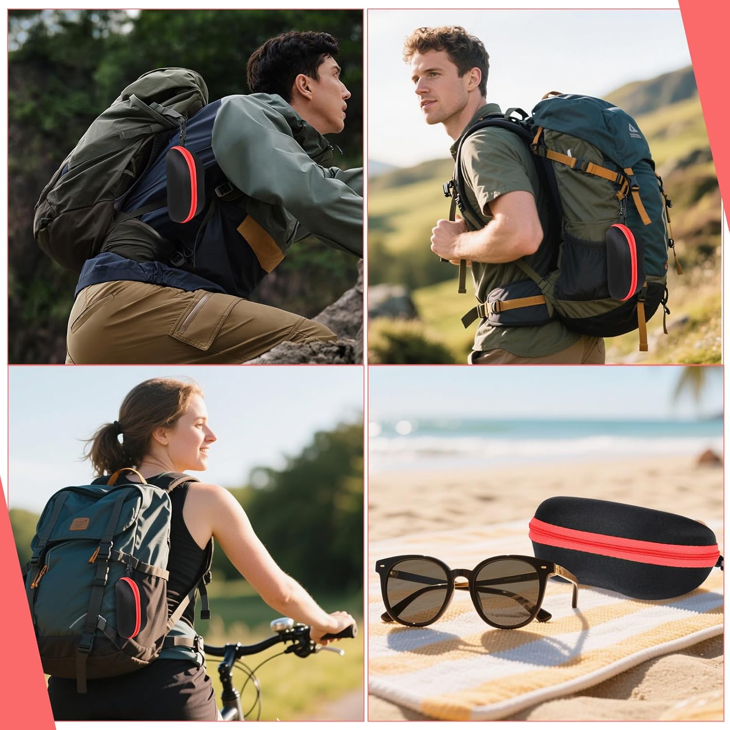 • Hook Design: The hard shell sunglasses case comes with a hook, allowing you to hang it on your backpack for easy portability during outdoor activities and travel