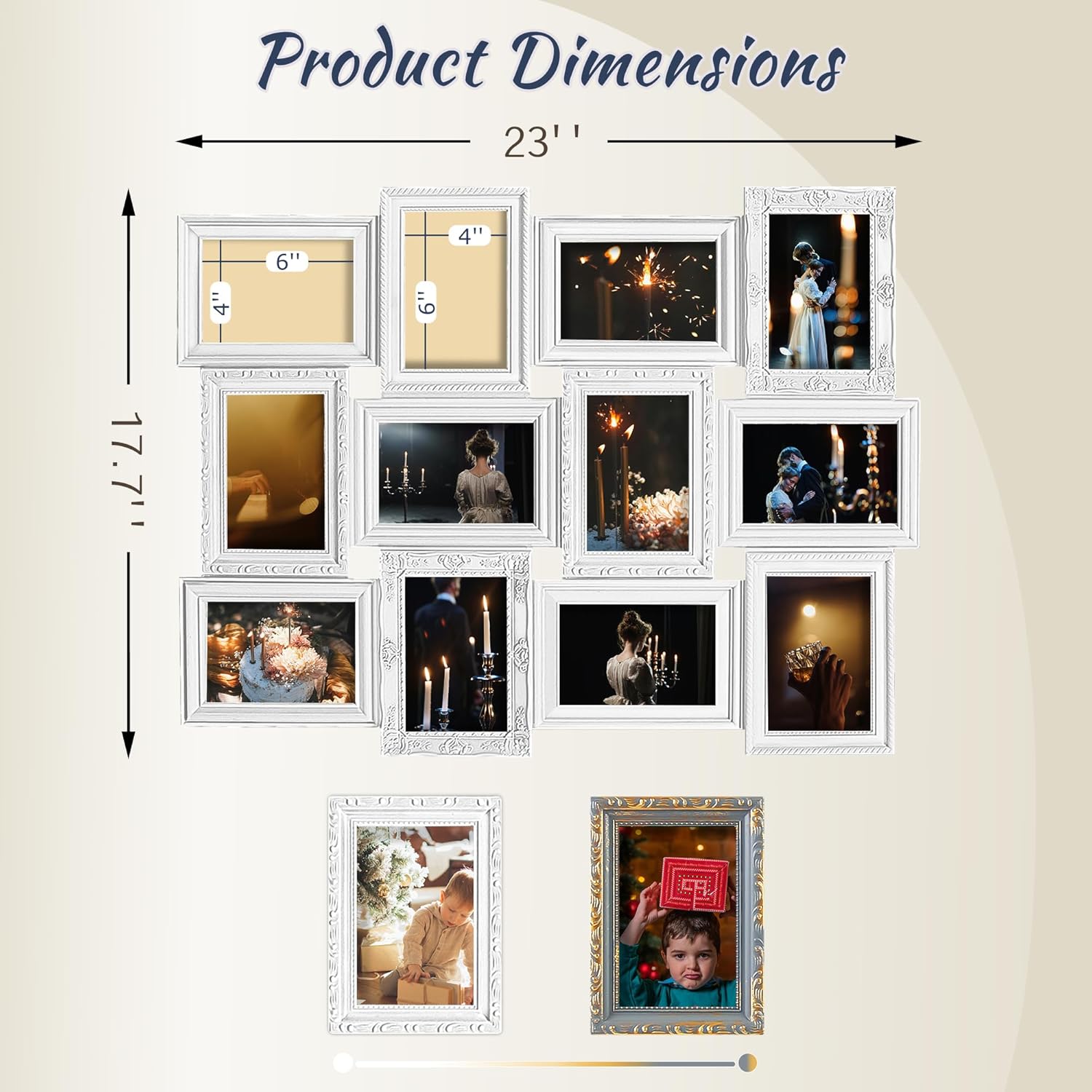 Jerry & Maggie 12 Opening Collage Photo Frame Rustic 23×18 Vintage Embossed Finish PVC Picture Frames Selfie Gallery Collage Wall Hanging For 6×4 Photo, White