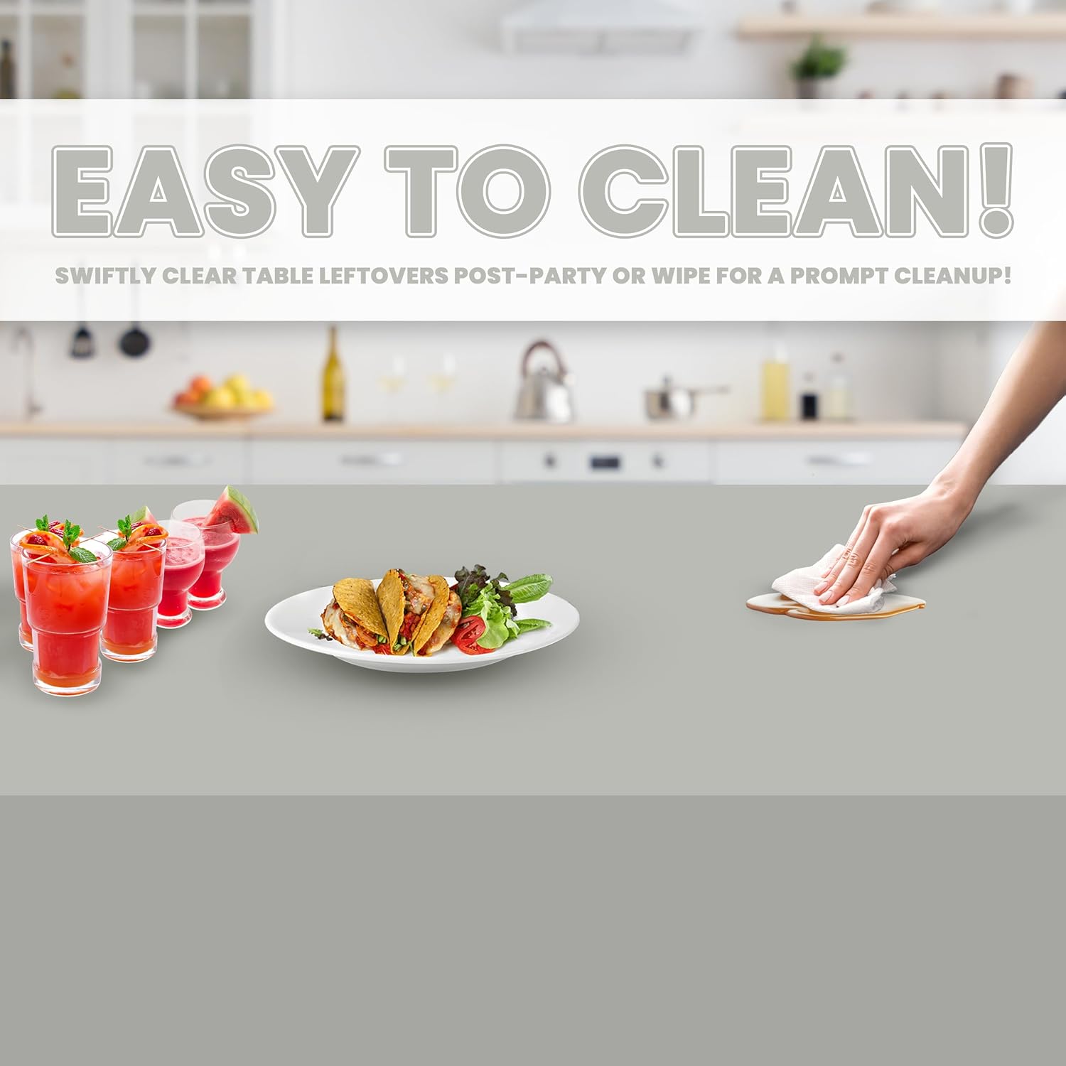 Grandipity 12 Pack Premium Disposable Plastic Tablecloth 54 Inch. x 108 Inch. Decorative Rectangle Table Cover - Light Grey