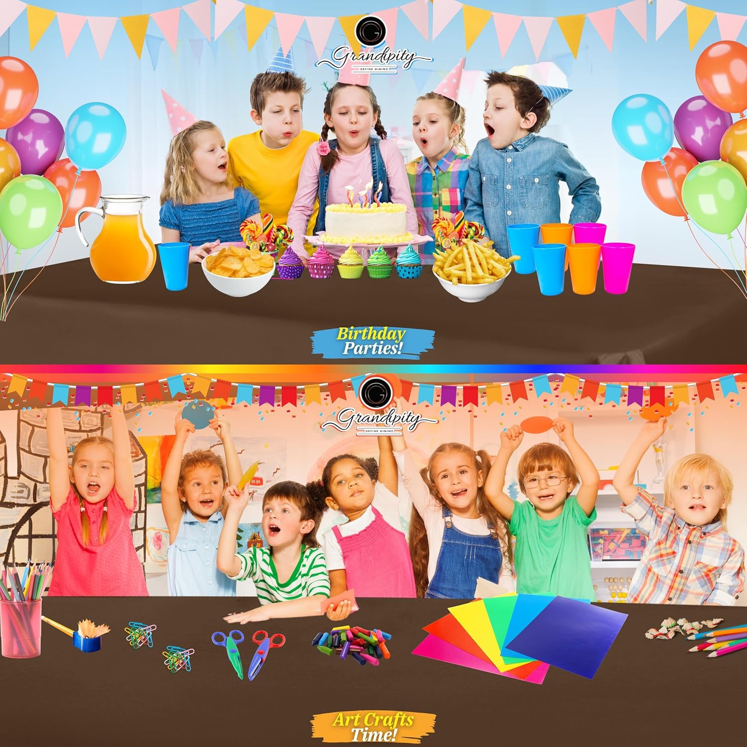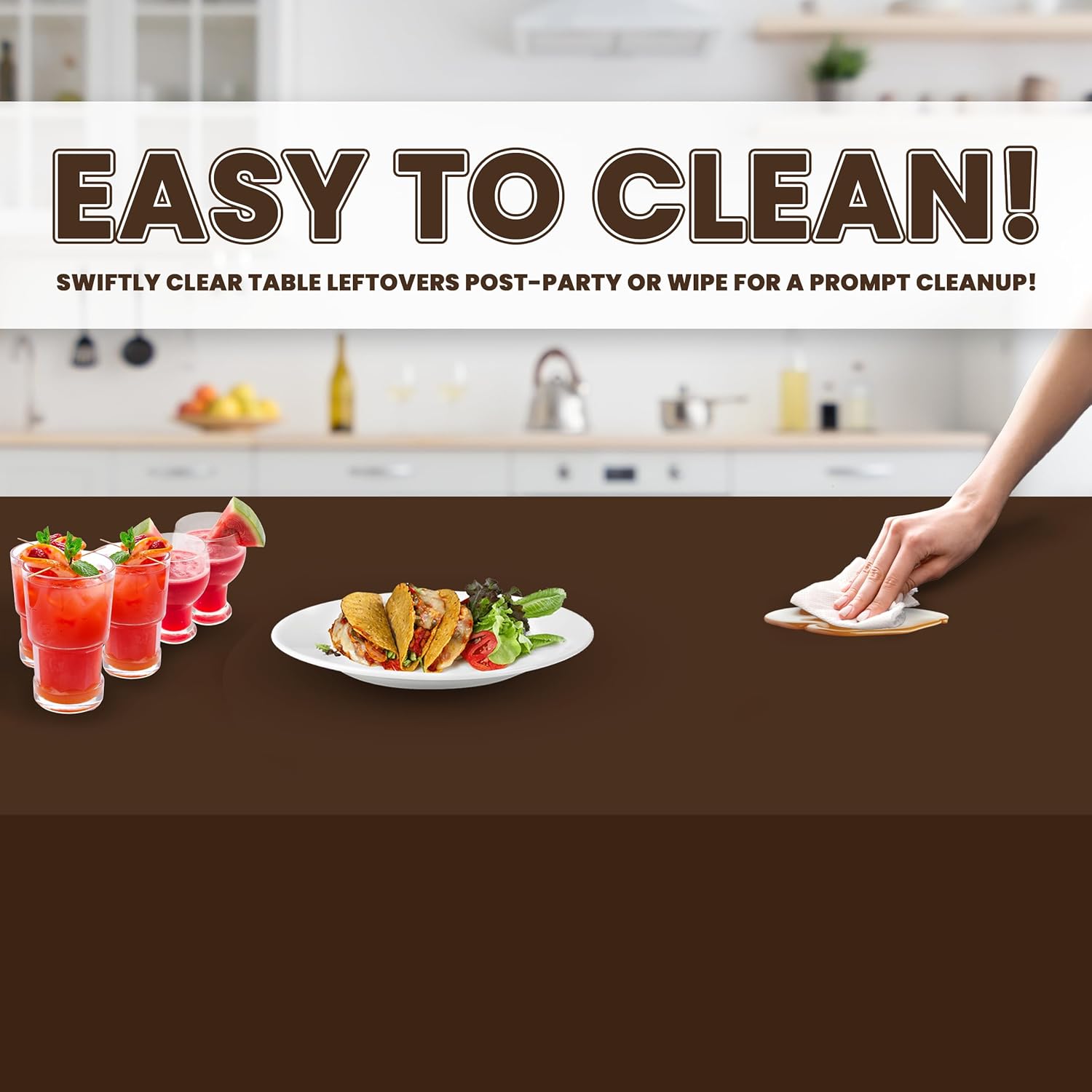 Grandipity 12 Pack Premium Disposable Plastic Tablecloth 54 Inch. x 108 Inch. Decorative Rectangle Table Cover - Brown