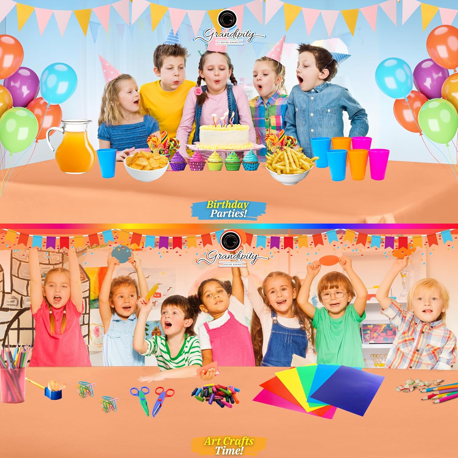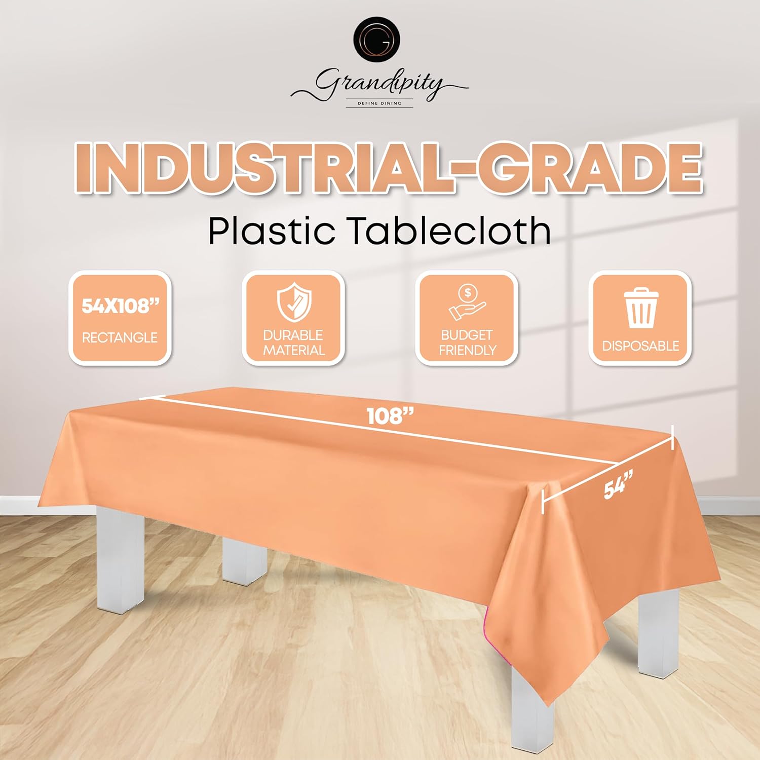 Grandipity 12 Pack Premium Disposable Plastic Tablecloth 54 Inch. x 108 Inch. Decorative Rectangle Table Cover - Peach