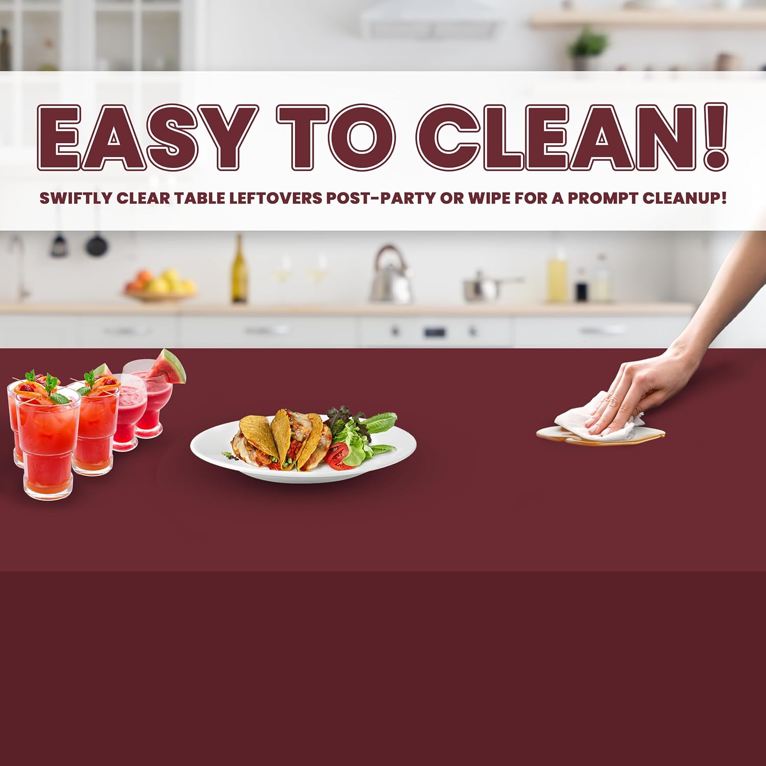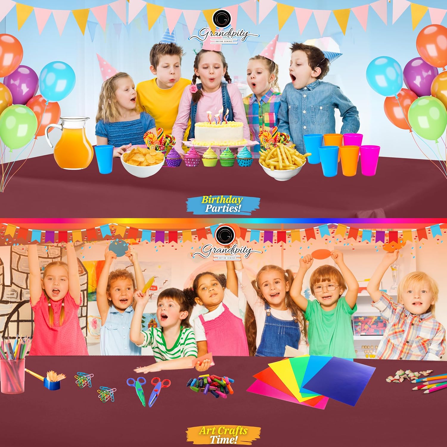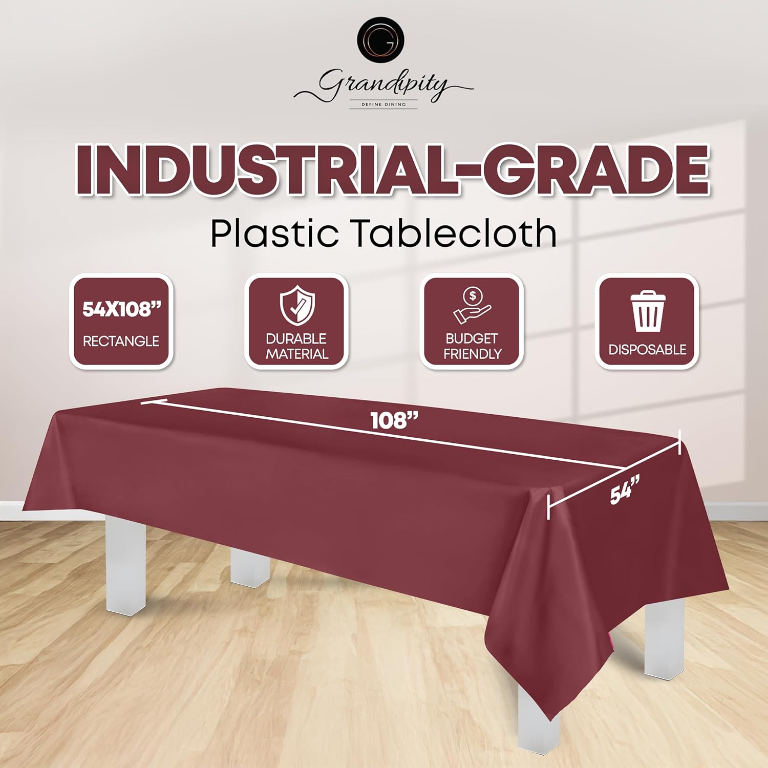 Grandipity 12 Pack Premium Disposable Plastic Tablecloth 54 Inch. x 108 Inch. Decorative Rectangle Table Cover - Burgundy