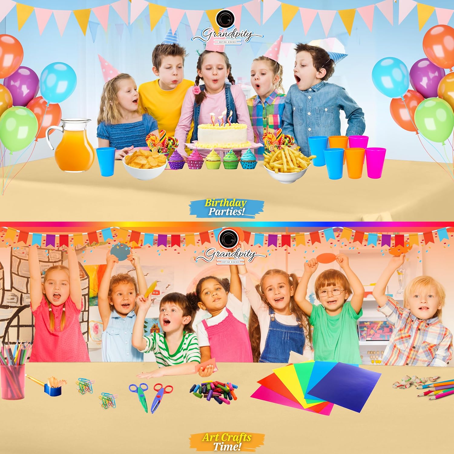 - ๐ EASY CLEAN UP: These disposable rectangle tablecloths are great at picking up any messy spills from food, drinks, paint from arts and crafts sessions and more! Whatโs better? Theyโre completely disposable so enjoy the party without the hassle of cleaning up.
