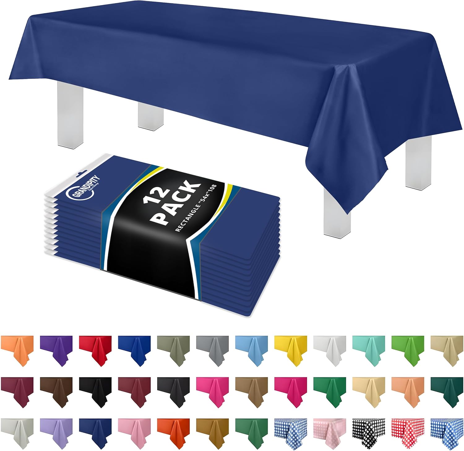 Grandipity 12 Pack Premium Disposable Plastic Tablecloth 54 Inch. x 108 Inch. Decorative Rectangle Table Cover - Navy Blue