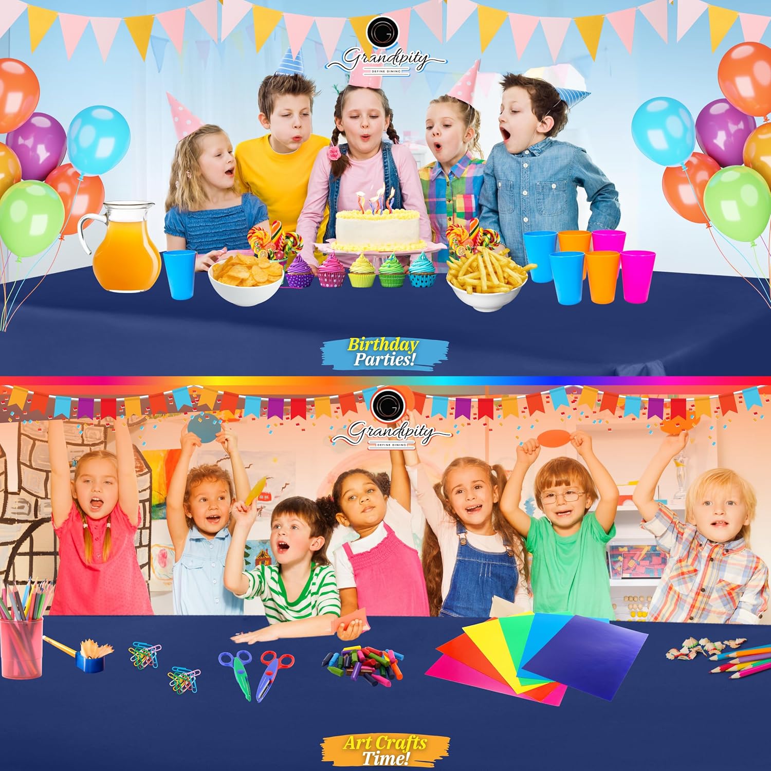 - ๐ EASY CLEAN UP: These disposable rectangle tablecloths are great at picking up any messy spills from food, drinks, paint from arts and crafts sessions and more! Whatโs better? Theyโre completely disposable so enjoy the party without the hassle of cleaning up.