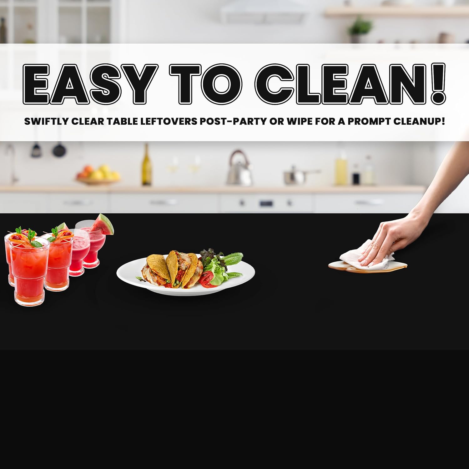- ๐ EASY CLEAN UP: These disposable rectangle tablecloths are great at picking up any messy spills from food, drinks, paint from arts and crafts sessions and more! Whatโs better? Theyโre completely disposable so enjoy the party without the hassle of cleaning up.