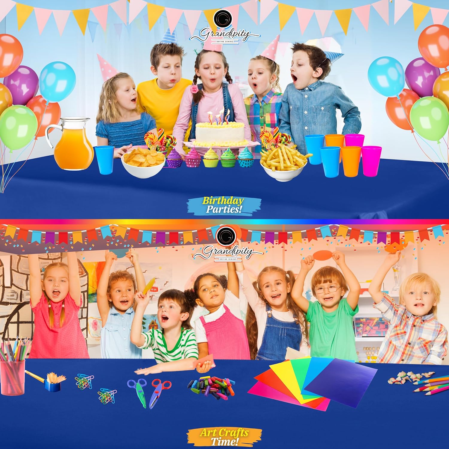 - โจ MULTIPLE PURPOSES: Theyโre not just for parties but great for decorations! Perfect plan party supplies for indoor and outdoor eating. Having some friends over to paint your new home? Doing arts and crafts with your little ones? These plastic rectangle tablecloths are a great way to line floors to catch the mess. Cover your tables with our disposable checkered or solid table coverings for indoor and outdoor celebrations.