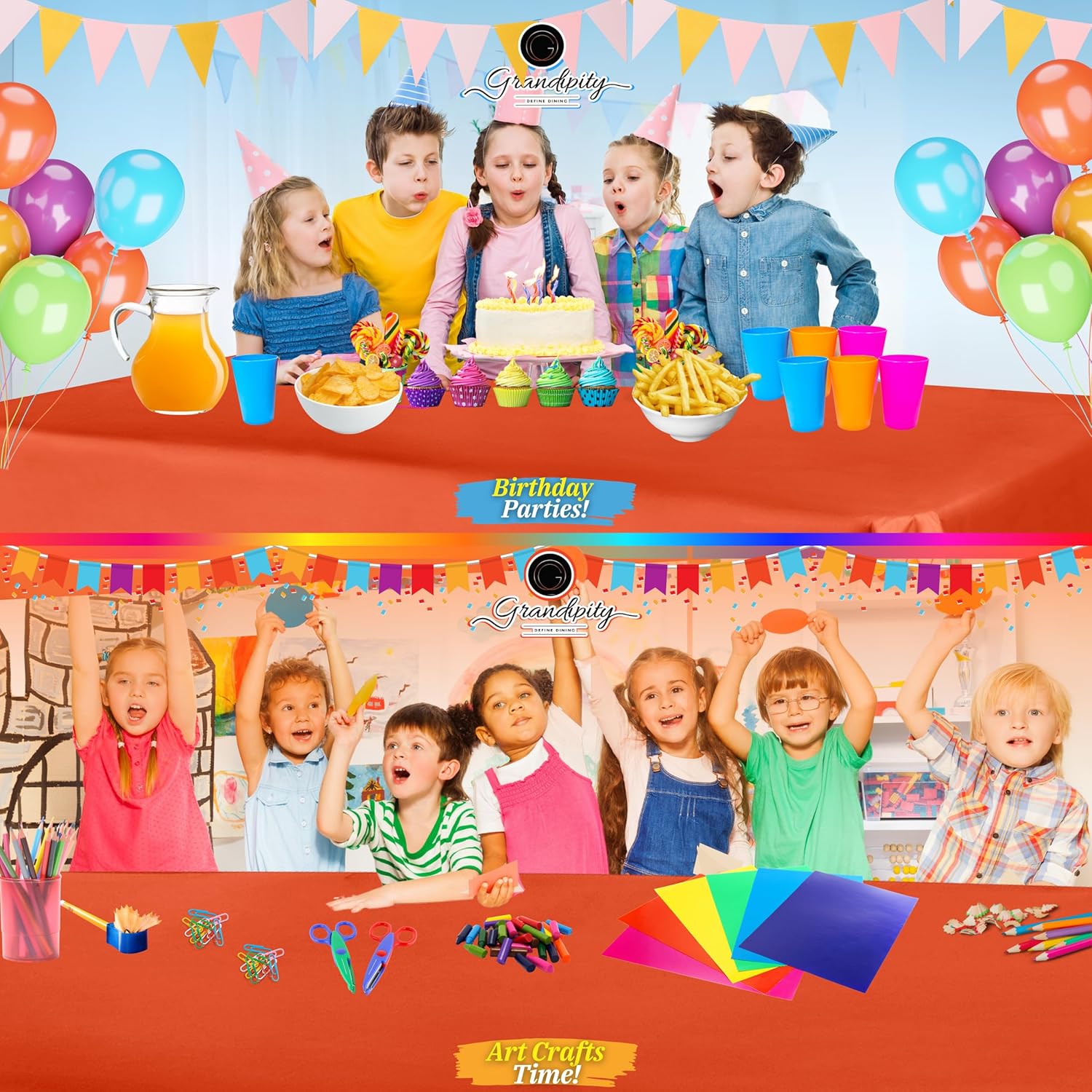 - โจ MULTIPLE PURPOSES: Theyโre not just for parties but great for decorations! Perfect plan party supplies for indoor and outdoor eating. Having some friends over to paint your new home? Doing arts and crafts with your little ones? These plastic rectangle tablecloths are a great way to line floors to catch the mess. Cover your tables with our disposable checkered or solid table coverings for indoor and outdoor celebrations.