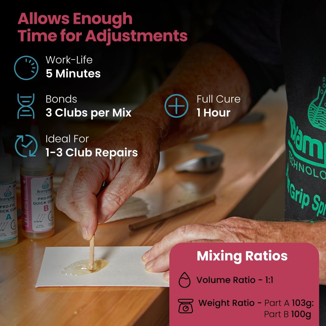 - PROFESSIONALLY DESIGNED: Crafted with Brampton’s proprietary formula, the PRO-FIX Quick Cure Golf Epoxy was developed by a chemical engineer and professional clubmakers, making it unlike any other golf epoxy or glue on the market.