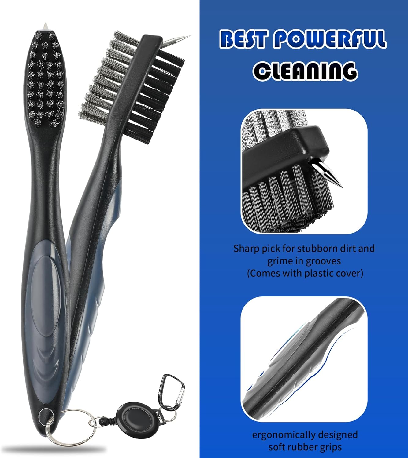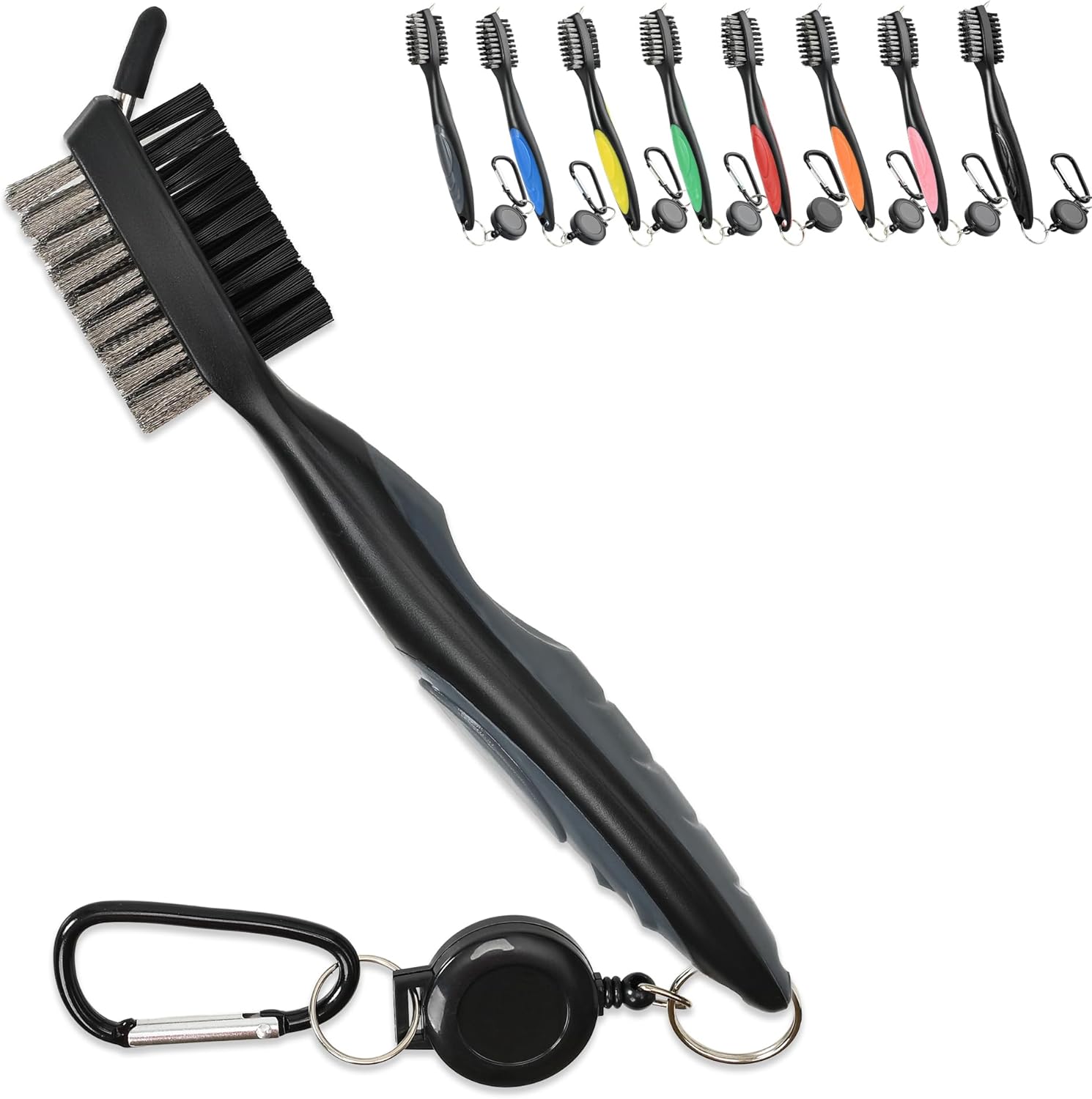 Mile High Life Golf Club Brush, Club Groove Cleaner with 2 Ft Retractable Extension Cord and Aluminum Carabiner, Golf Bag Accessories for Men and Women