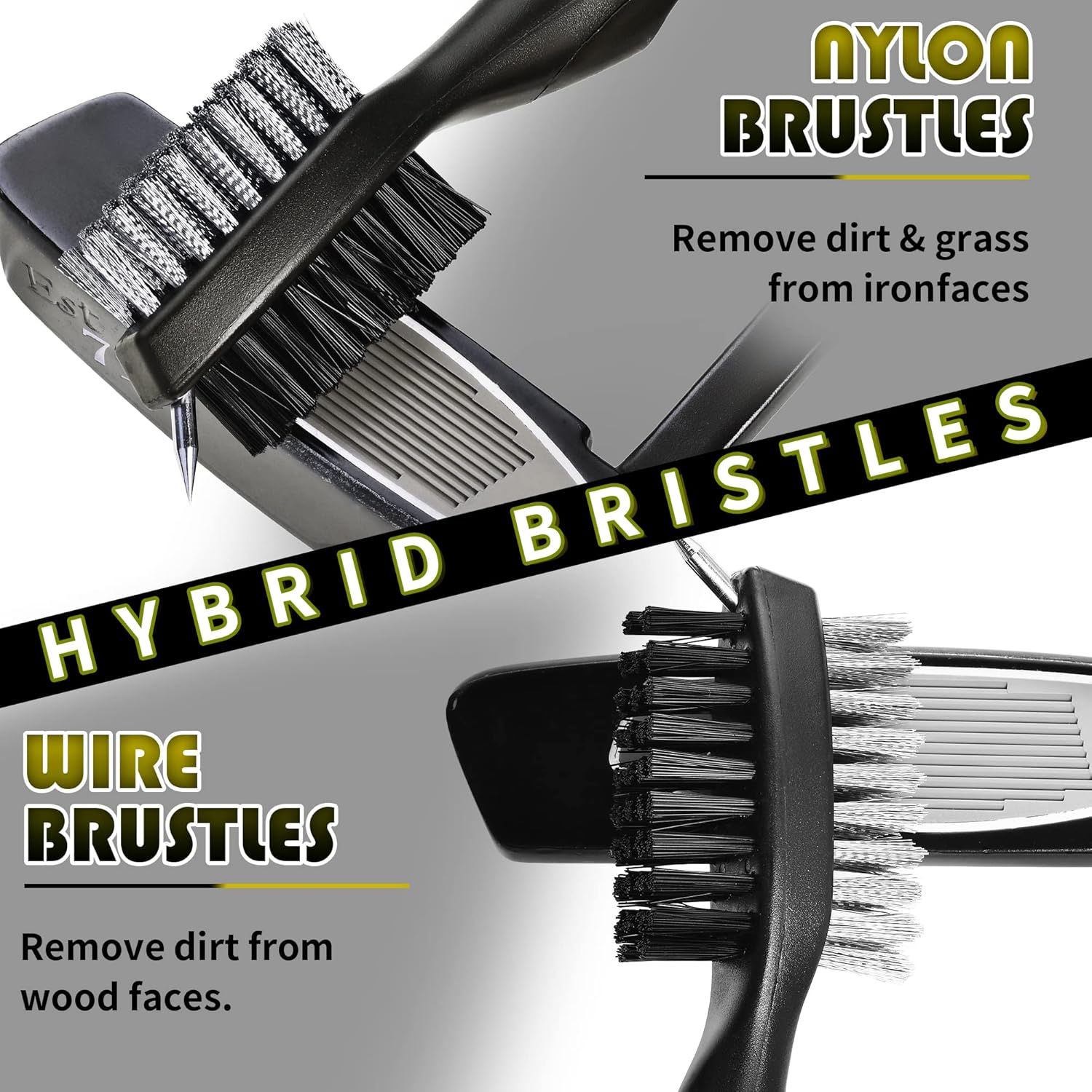 Mile High Life Golf Club Brush, Club Groove Cleaner with 2 Ft Retractable Extension Cord and Aluminum Carabiner, Golf Bag Accessories for Men and Women