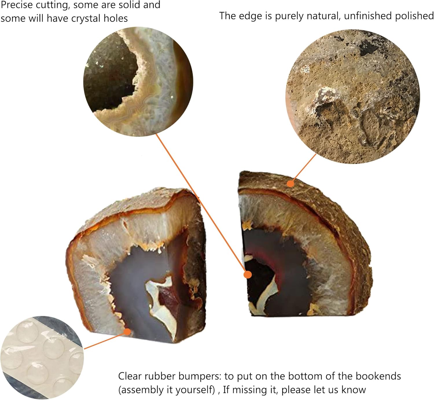 - Natural Agate Bookends: Made from natural Agate stone, polished to showcase unique patterns and colors. Enhance your bookshelf or crystal altar