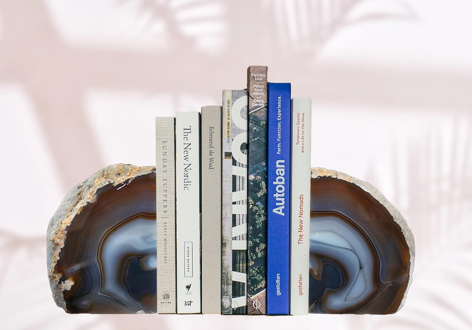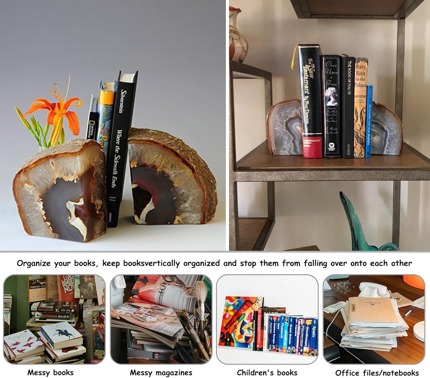 AMOYSTONE Heavy-Duty Agate Bookends, Natural Decorative Book Ends for Heavy Books, Crystal Book Stopper 6-8 LBS with Non-Slip Mat, Perfect for Office and Home Shelves