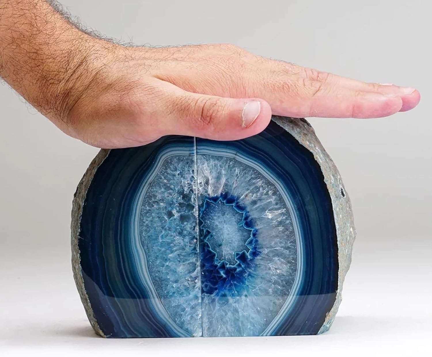 - Blue Agate Bookends: Enhance your bookshelf or crystal altar with our decorative agate bookends. Dyed blue to adapt to various home decoration themes