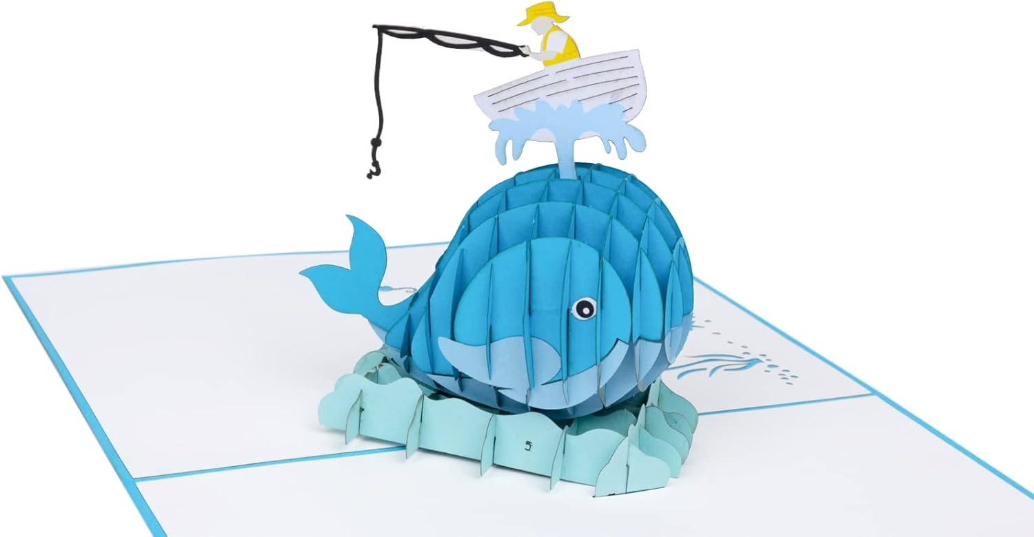 - š£ **Stunning 3D Fisherman & Whale Design** ā Features an intricately crafted blue whale with a fisherman atop, creating a breathtaking nautical scene that pops up when opened.