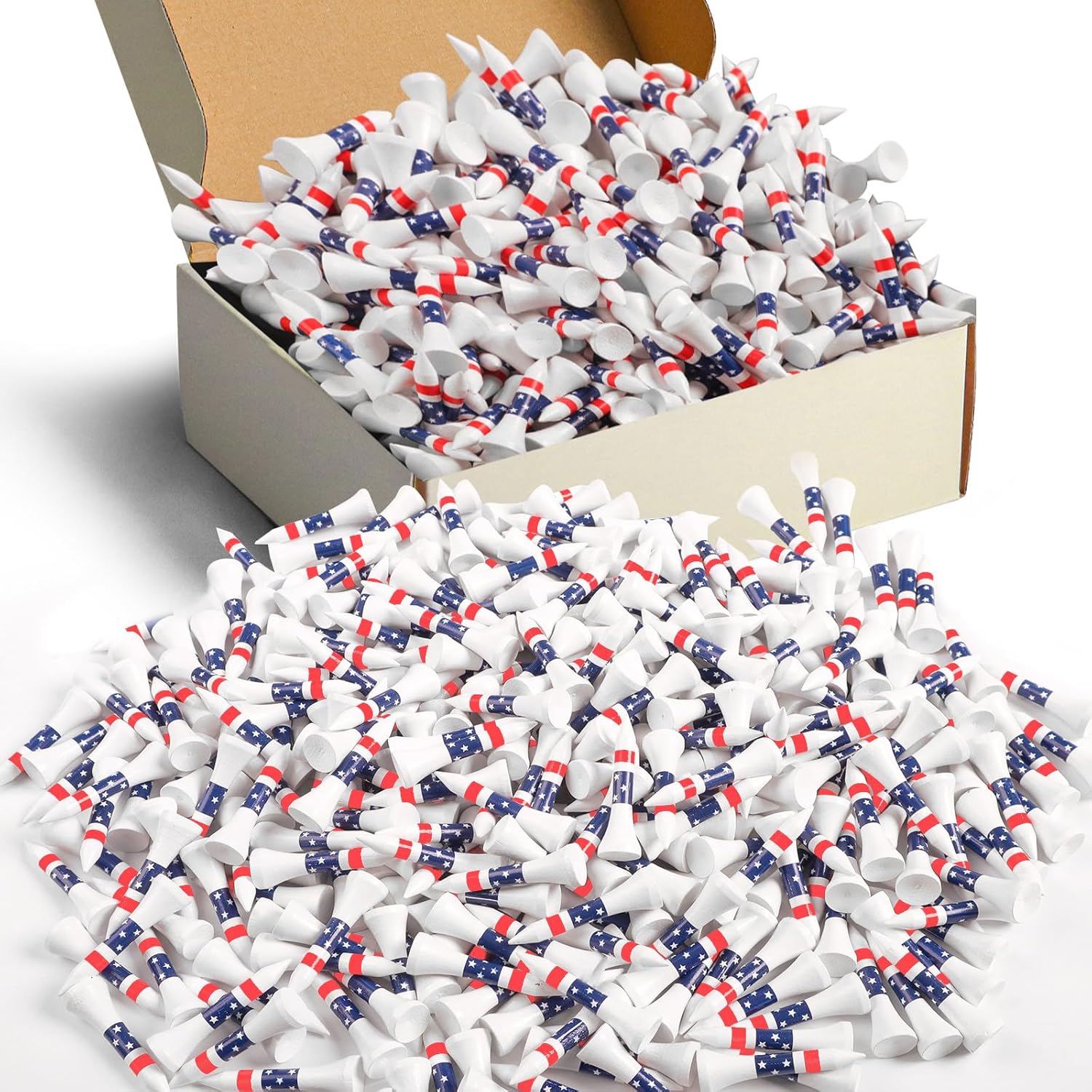 FINGER TEN Bamboo Golf Tees Wood 1 1/2 2 3/4 3 1/4 Inch Wooden Short Long Tee Color Bulk 250/500/1000/2000 Count for Men Women Kids in Red Pink USA Flag